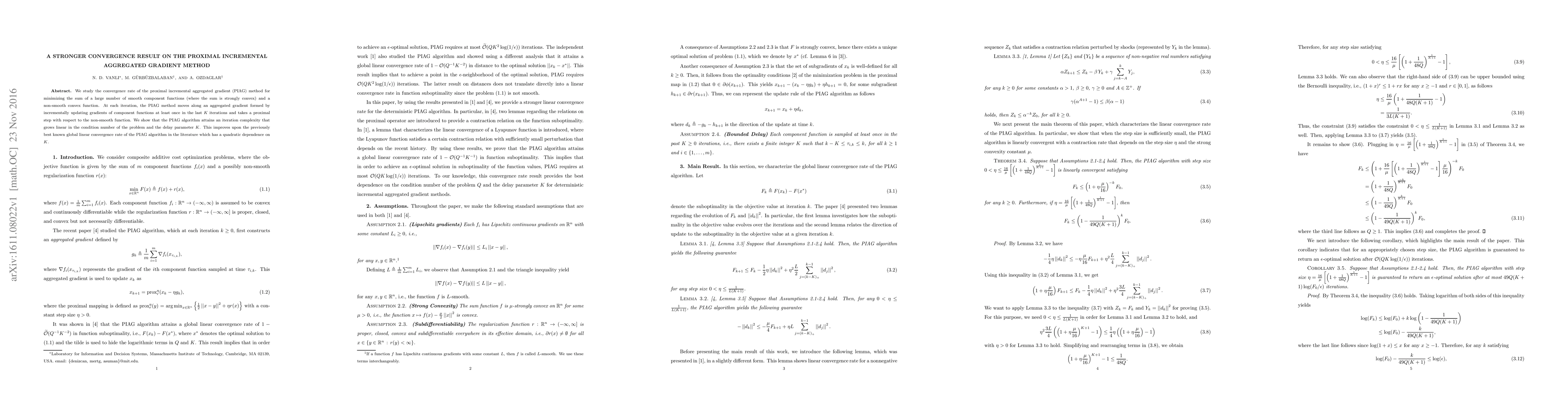 We study the convergence rate of the proximal incremental aggregated gradient (PIAG) method for minimizing the sum of a large number of smooth component functions (where the sum is strongly convex) and a non-smooth convex function. At each iteration, the PIAG method moves along an aggregated gradient formed by incrementally updating gradients of component functions at least once in the last $K$ iterations and takes a proximal step with respect to the non-smooth function. We show that the PIAG algorithm attains an iteration complexity that grows linear in the condition number of the problem and the delay parameter $K$. This improves upon the previously best known global linear convergence rate of the PIAG algorithm in the literature which has a quadratic dependence on $K$.