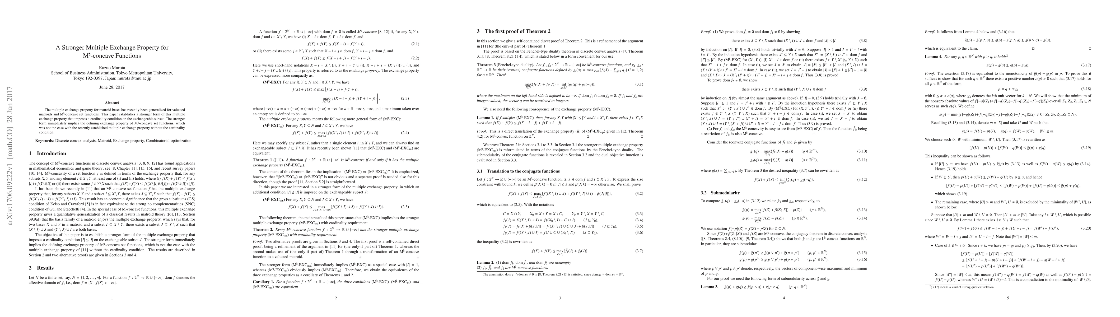 This paper strengthens the multiple exchange property for M$^{\natural}$-concave functions by adding a cardinality condition on the exchangeable subset, which now implies the defining exchange property of M$^{\natural}$-concave set functions, unlike the previously established property without this condition.