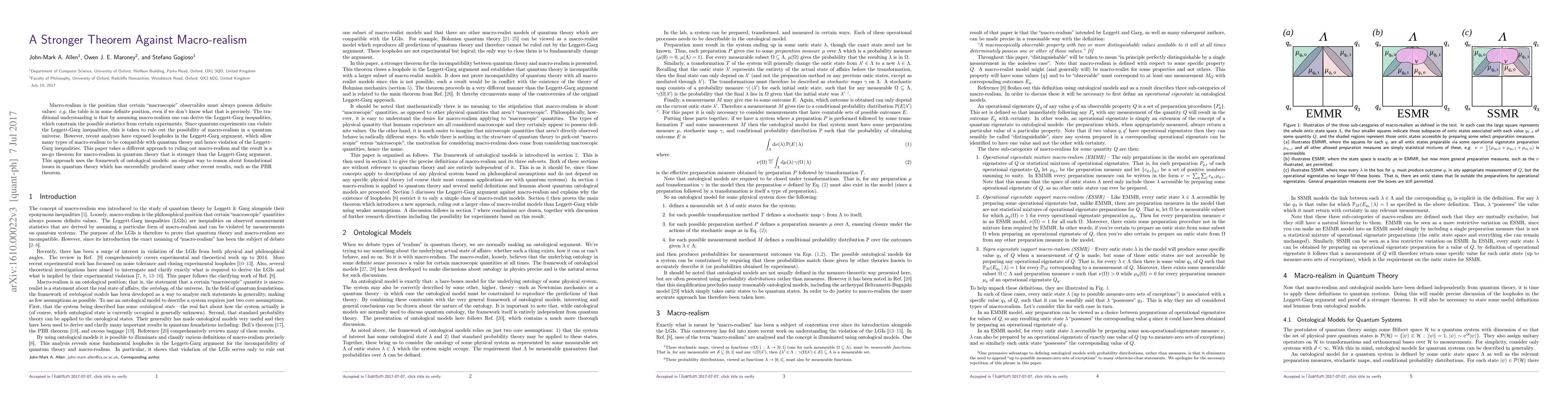 This paper presents a stronger theorem against macro-realism by using the framework of ontological models, demonstrating that macro-realism is incompatible with quantum theory, even after accounting for loopholes in the Leggett-Garg inequalities.