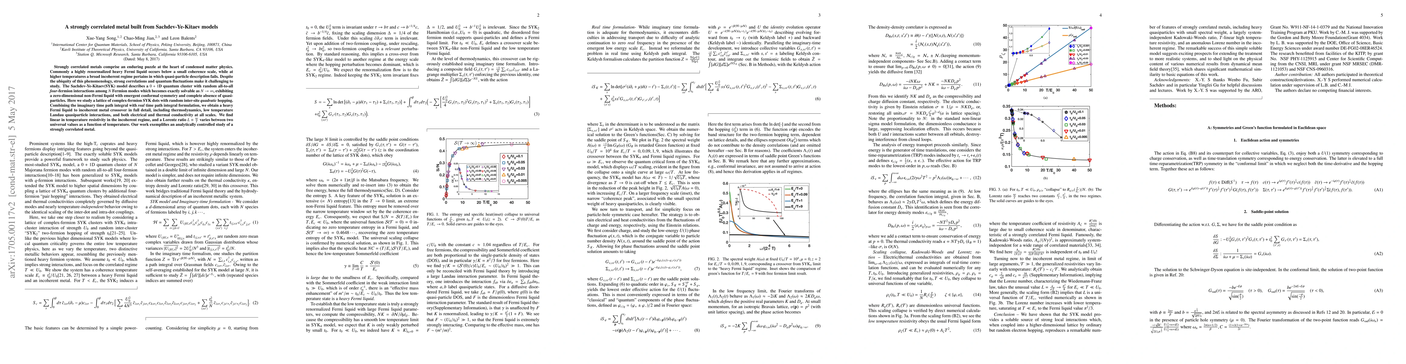 Strongly correlated metals comprise an enduring puzzle at the heart of condensed matter physics. Commonly a highly renormalized heavy Fermi liquid occurs below a small coherence scale, while at higher temperatures a broad incoherent regime pertains in which quasi-particle description fails. Despite the ubiquity of this phenomenology, strong correlations and quantum fluctuations make it challenging to study. The Sachdev-Ye-Kitaev(SYK) model describes a $0+1$D quantum cluster with random all-to-all \emph{four}-fermion interactions among $N$ Fermion modes which becomes exactly solvable as $N\rightarrow \infty$, exhibiting a zero-dimensional non-Fermi liquid with emergent conformal symmetry and complete absence of quasi-particles. Here we study a lattice of complex-fermion SYK dots with random inter-site \emph{quadratic} hopping. Combining the imaginary time path integral with \emph{real} time path integral formulation, we obtain a heavy Fermi liquid to incoherent metal crossover in full detail, including thermodynamics, low temperature Landau quasiparticle interactions, and both electrical and thermal conductivity at all scales. We find linear in temperature resistivity in the incoherent regime, and a Lorentz ratio $L\equiv \frac{\kappa\rho}{T}$ varies between two universal values as a function of temperature. Our work exemplifies an analytically controlled study of a strongly correlated metal.