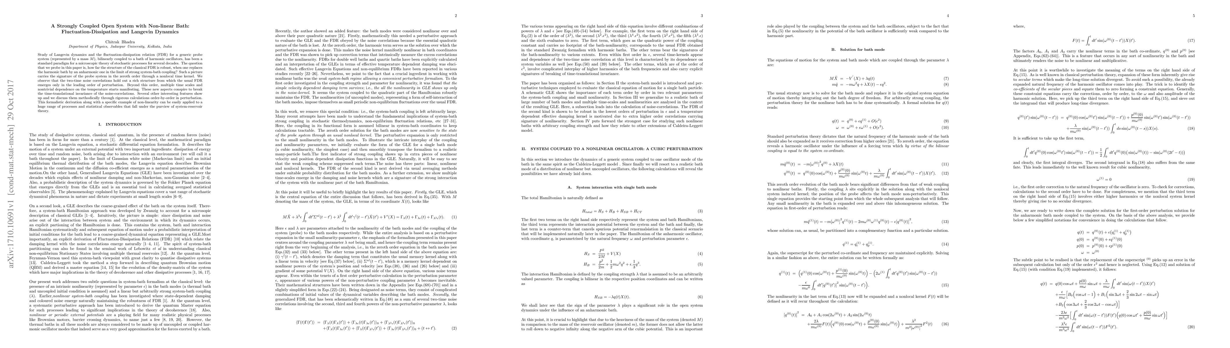 Study of Langevin dynamics and the fluctuation-dissipation relation (FDR) for a generic probe system (represented by a mass $M$), bilinearly coupled to a bath of harmonic oscillators, has been a standard paradigm for a microscopic theory of stochastic processes for several decades. The question that we probe in this paper is, how far the structure of the classical FDR is robust, when one replaces the harmonic bath by an anharmonic one in the limit of strong system-bath coupling? Such a picture carries the signature of the probe system in the zeroth order through a nonlocal time kernel. We observe that the two-time noise correlations hold out a rich structure from which the usual FDR emerges only in the leading order of perturbation. Beyond this order, multiple time scales and nontrivial dependence on the temperature starts manifesting. These new aspects conspire to break the time-translational invariance of the noise-correlations. Several other interesting features show up and we discuss them methodically through rigorous calculations order-by-order in perturbation. This formalistic derivation along with a specific example of non-linearity can be easily applied to a huge range of processes and statistical observables that fall under the purview of system-reservoir theory.