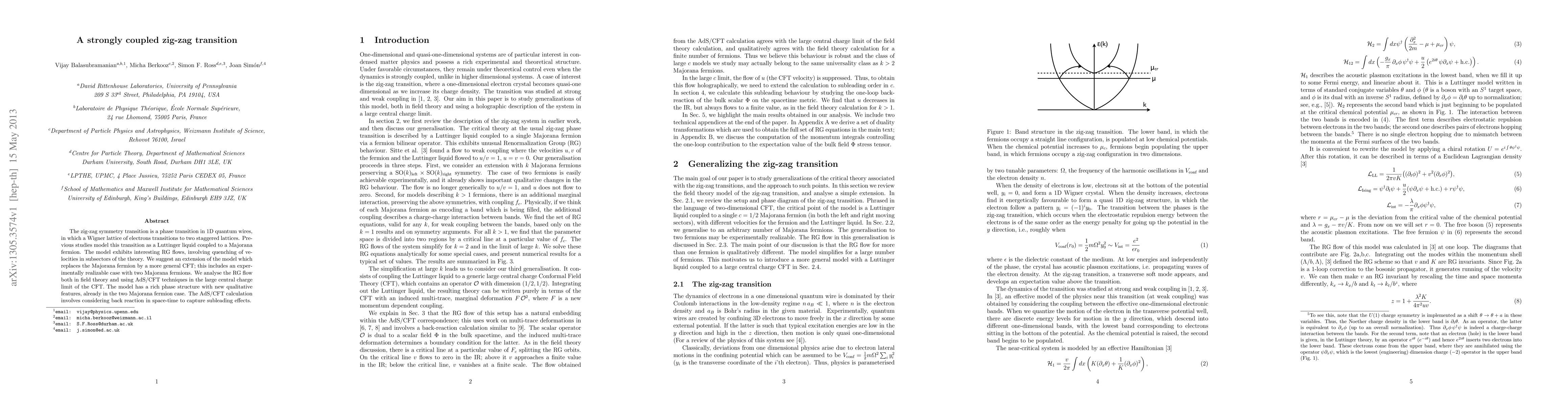 The zig-zag symmetry transition is a phase transition in 1D quantum wires, in which a Wigner lattice of electrons transitions to two staggered lattices. Previous studies model this transition as a Luttinger liquid coupled to a Majorana fermion. The model exhibits interesting RG flows, involving quenching of velocities in subsectors of the theory. We suggest an extension of the model which replaces the Majorana fermion by a more general CFT; this includes an experimentally realizable case with two Majorana fermions. We analyse the RG flow both in field theory and using AdS/CFT techniques in the large central charge limit of the CFT. The model has a rich phase structure with new qualitative features, already in the two Majorana fermion case. The AdS/CFT calculation involves considering back reaction in space-time to capture subleading effects.