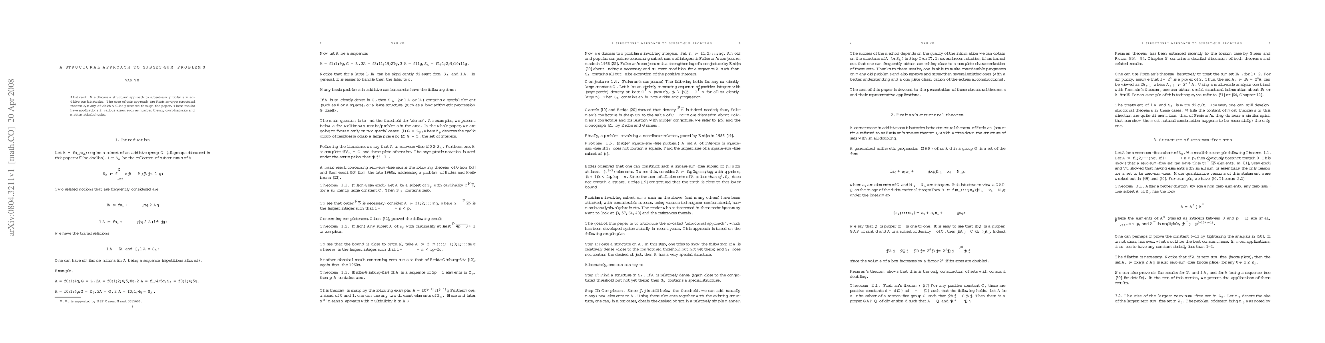 This paper explores a structural approach to subset-sum problems using Freiman-type theorems in additive combinatorics, with applications spanning number theory, combinatorics, and mathematical physics. The methodology focuses on revealing underlying structures within subset-sum problems.
