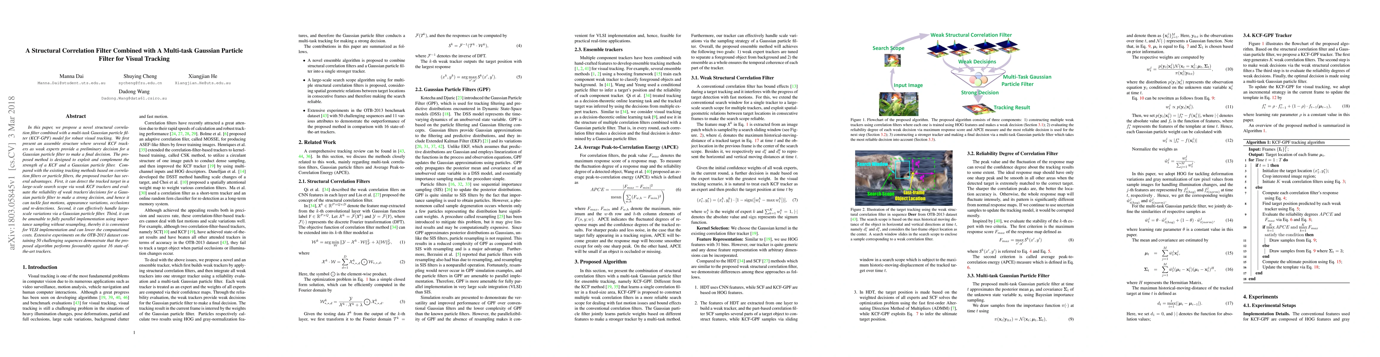This paper introduces a KCF-GPF model combining structural correlation filters with a multi-task Gaussian particle filter for robust visual tracking. The method leverages weak KCF trackers to detect targets and a Gaussian particle filter for final decision-making, effectively handling fast motions, variations, and occlusions while being suitable for parallel implementation.
