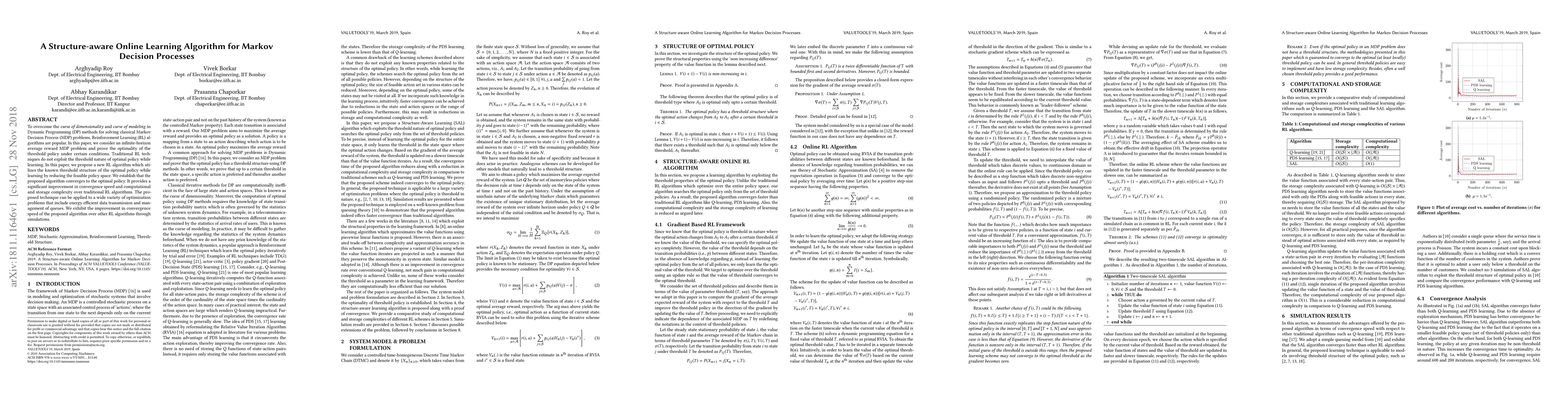 This paper proposes a novel Reinforcement Learning algorithm that leverages the threshold structure of the optimal policy to solve infinite-horizon average reward Markov Decision Processes. The algorithm significantly improves convergence speed and reduces computational and storage complexity compared to traditional methods, as demonstrated through simulations.