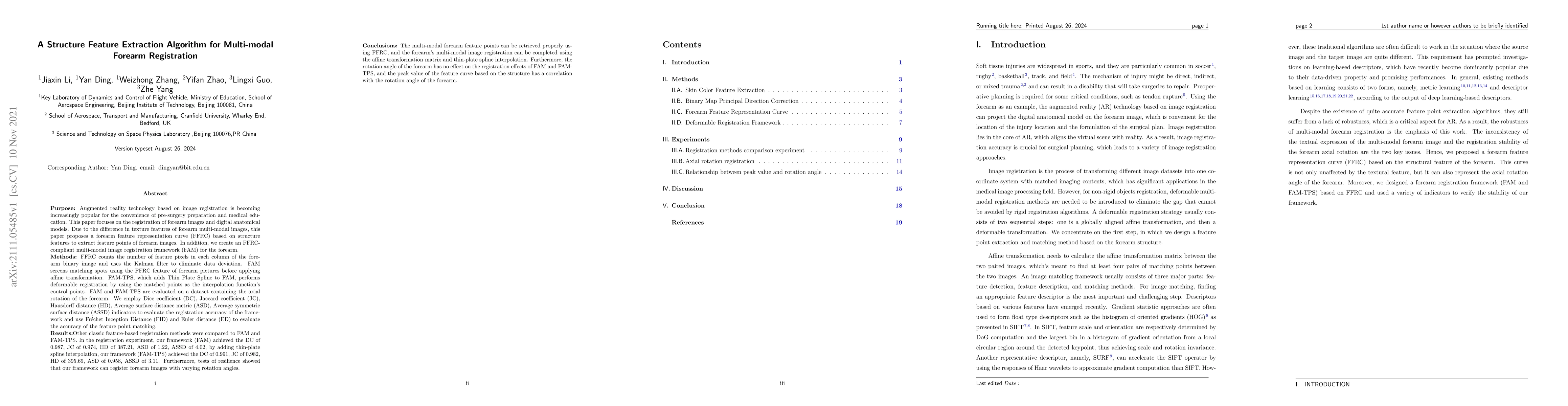 This paper introduces a novel algorithm for registering multi-modal forearm images with digital anatomical models using a feature representation curve (FFRC) within a structure compliant framework (FAM) to address texture differences. The method aims to enhance augmented reality applications in pre-surgery preparation and medical education.