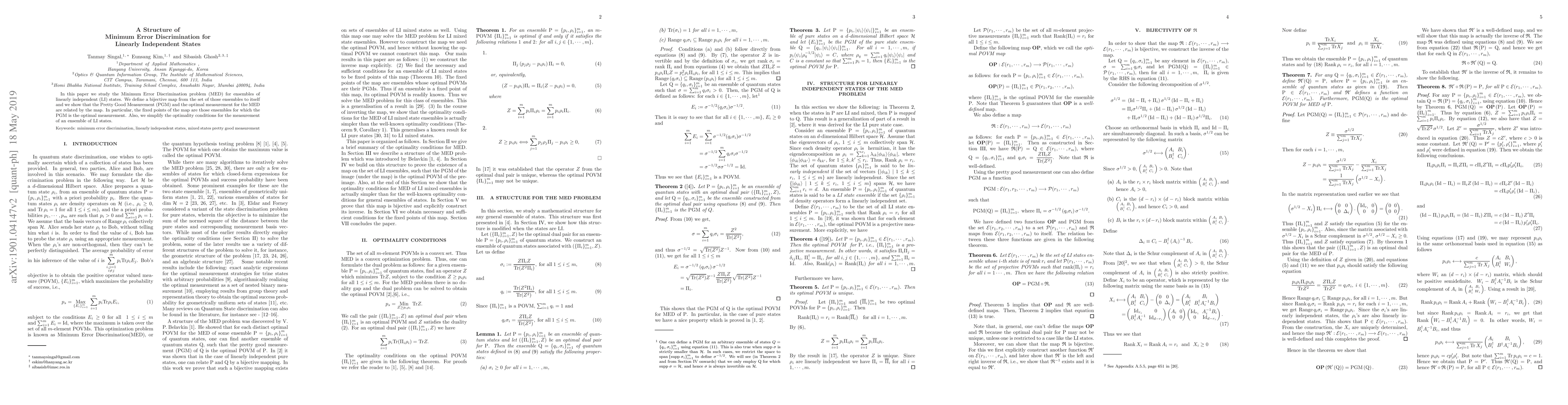 A study on minimum error discrimination for ensembles of linearly independent states shows that the Pretty Good Measurement is related to the optimal measurement and simplifies optimality conditions for these ensembles.