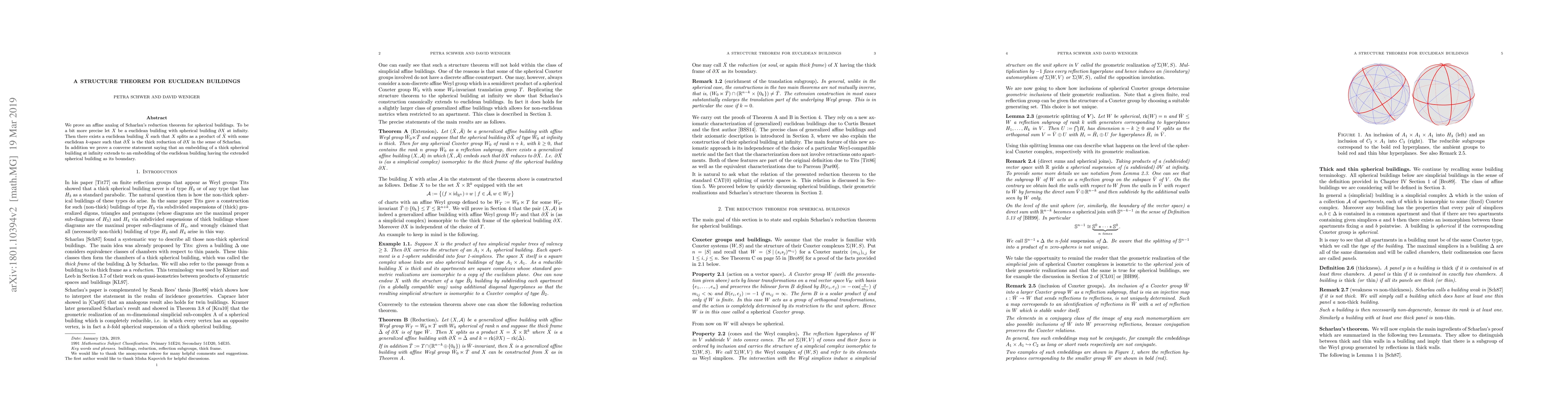 This paper proves an affine version of Scharlau's reduction theorem for spherical buildings, establishing that any Euclidean building can be decomposed into a product of a modified Euclidean building and a Euclidean k-space, where the modified building's boundary is the thick reduction of the original building's boundary. Additionally, it shows that any embedding of a thick spherical building can extend to a Euclidean building with the modified spherical building as its boundary.