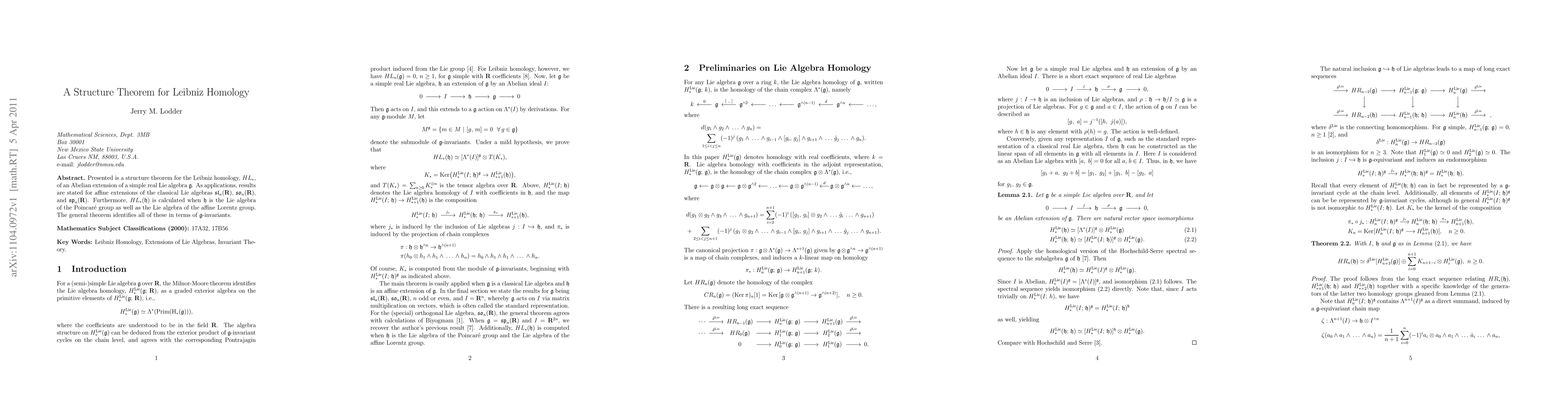 Researchers develop a structure theorem for Leibniz Homology of Abelian extensions of simple real Lie algebras, identifying various classical Lie algebras and their invariants.