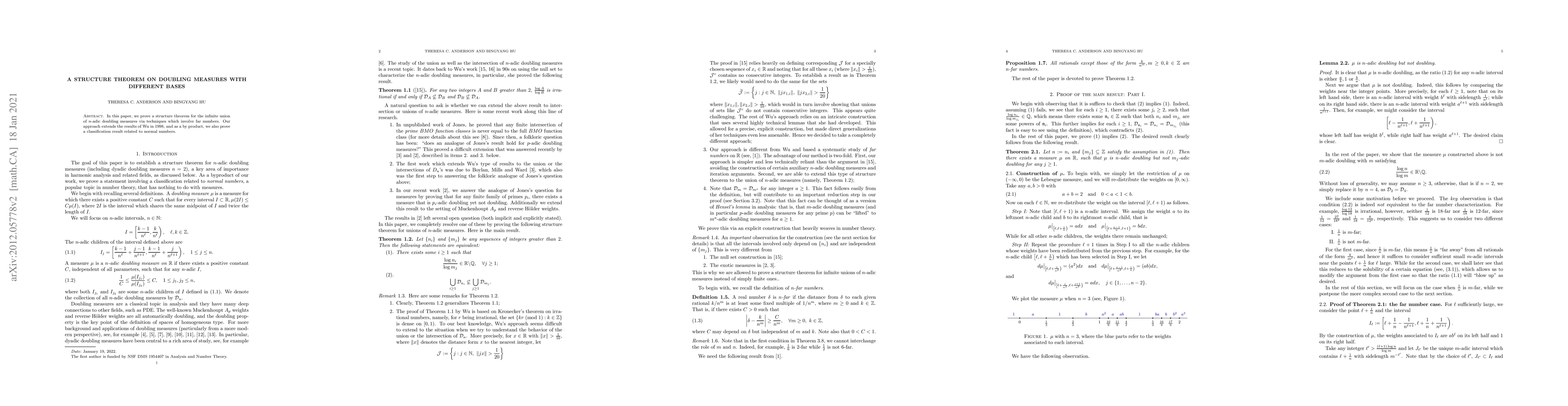 In this paper, we prove a structure theorem for the infinite union of $n$-adic doubling measures via techniques which involve far numbers. Our approach extends the results of Wu in 1998, and as a by product, we also prove a classification result related to normal numbers.