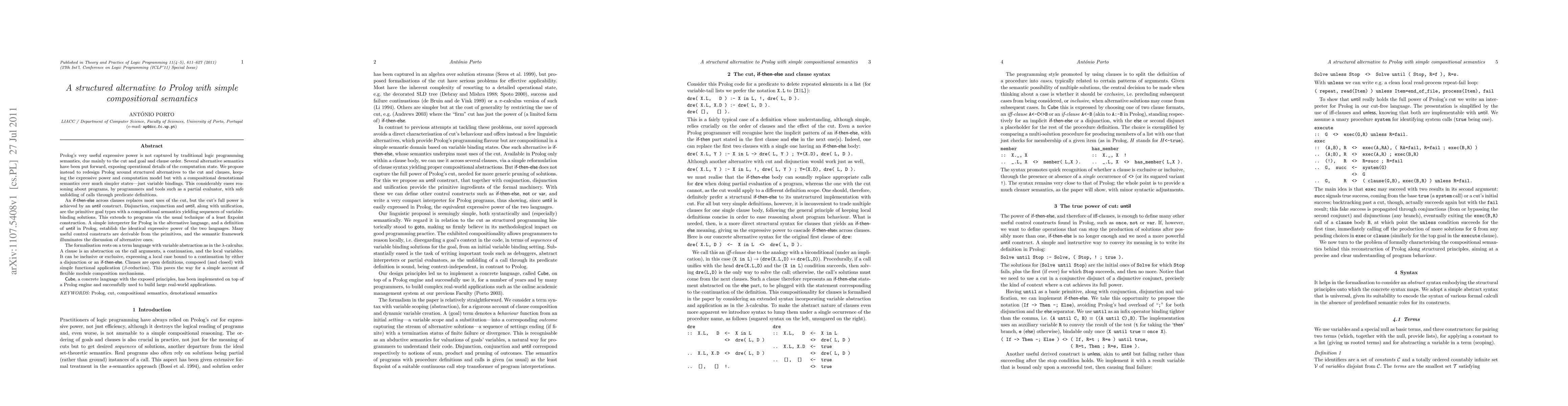 This paper proposes a structured alternative to Prolog that maintains its expressive power while introducing a simpler compositional semantics through variable bindings, replacing Prolog's cut and clause order with an if-then-else across clauses and an until construct. The new framework facilitates reasoning and program analysis, and an implemented prototype, Cube, demonstrates the identical expressive power of the new language.