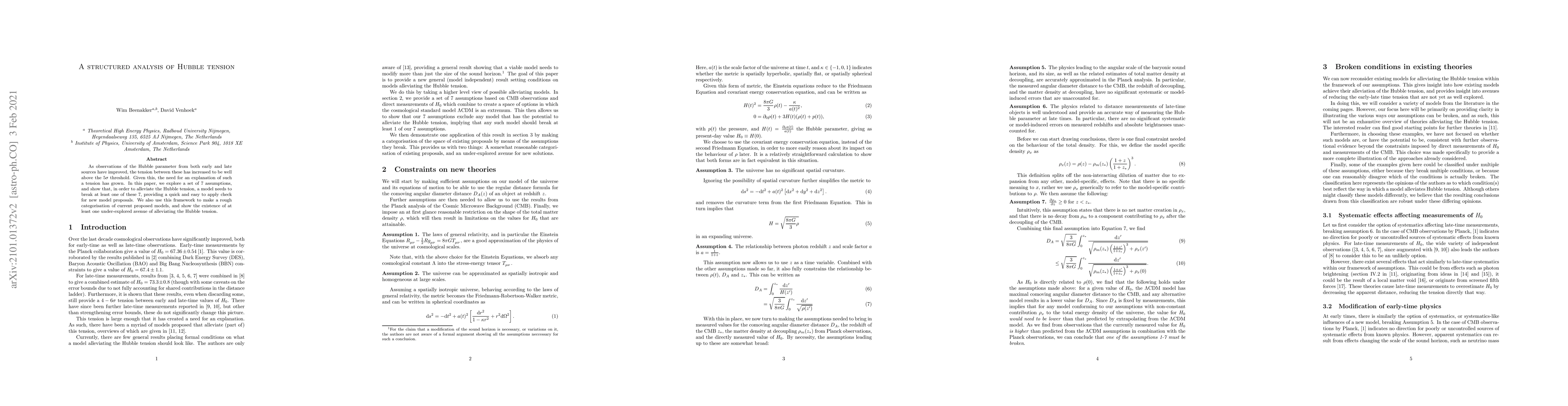 This paper investigates the growing Hubble tension between early and late universe observations, proposing a framework based on 7 key assumptions. It demonstrates that alleviating the tension requires breaking at least one of these assumptions, categorizing current models and highlighting an under-explored solution.