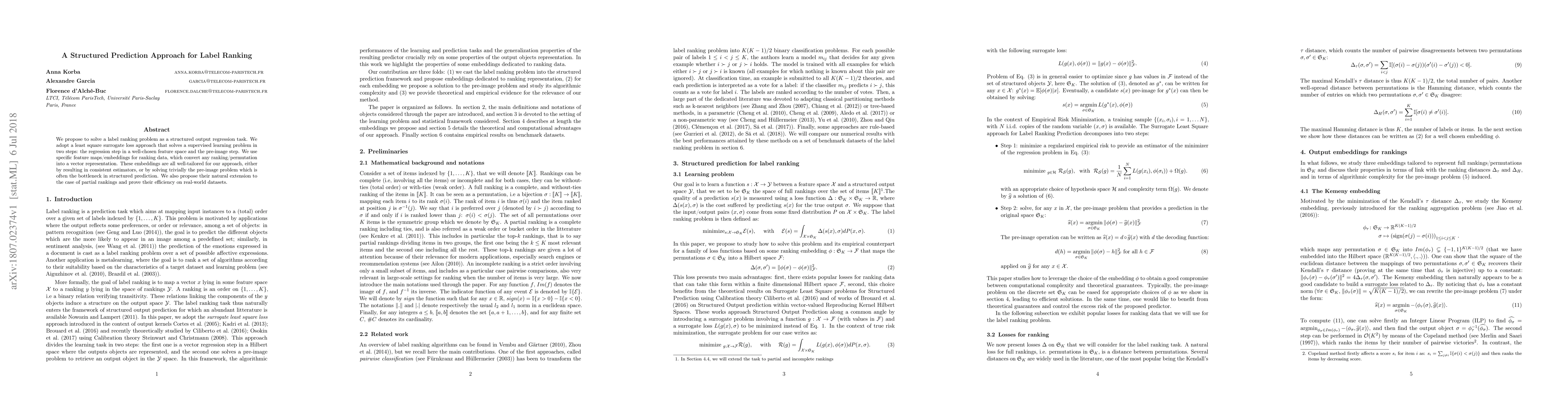 This paper proposes a structured output regression approach for label ranking using a least square surrogate loss, involving feature space regression and a pre-image step. It introduces tailored feature maps for converting rankings into vector representations, addressing the pre-image problem efficiently and extending the method to handle partial rankings.