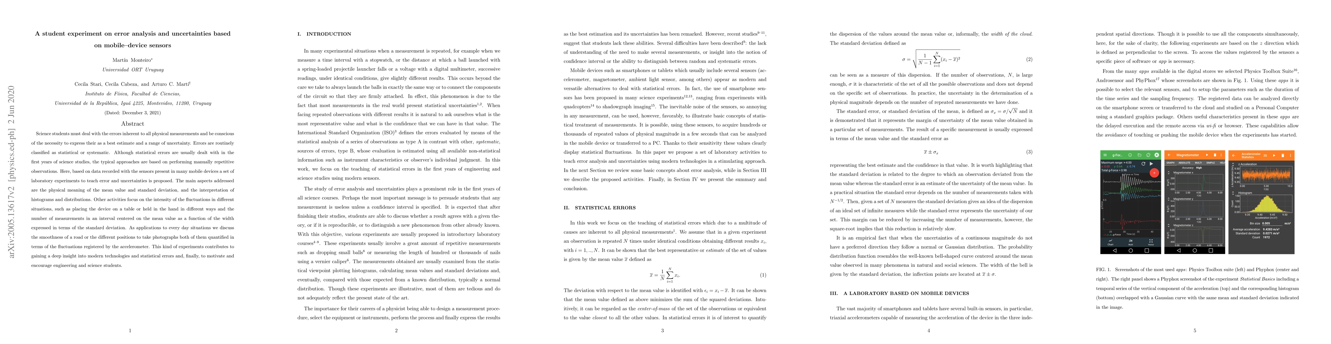 Science students must deal with the errors inherent to all physical measurements and be conscious of the necessity to express their as a best estimate and a range of uncertainty. Errors are routinely classified as statistical or systematic. Although statistical errors are usually dealt with in the first years of science studies, the typical approaches are based on performing manually repetitive observations. Here, based on data recorded with the sensors present in many mobile devices a set of laboratory experiments to teach error and uncertainties is proposed. The main aspects addressed are the physical meaning of the mean value and standard deviation, and the interpretation of histograms and distributions. Other activities focus on the intensity of the fluctuations in different situations, such as placing the device on a table or held in the hand in different ways and the number of measurements in an interval centered on the mean value as a function of the width expressed in terms of the standard deviation. As applications to every day situations we discuss the smoothness of a road or the different positions to take photographs both of them quantified in terms of the fluctuations registered by the accelerometer. This kind of experiments contributes to gaining a deep insight into modern technologies and statistical errors and, finally, to motivate and encourage engineering and science students.
