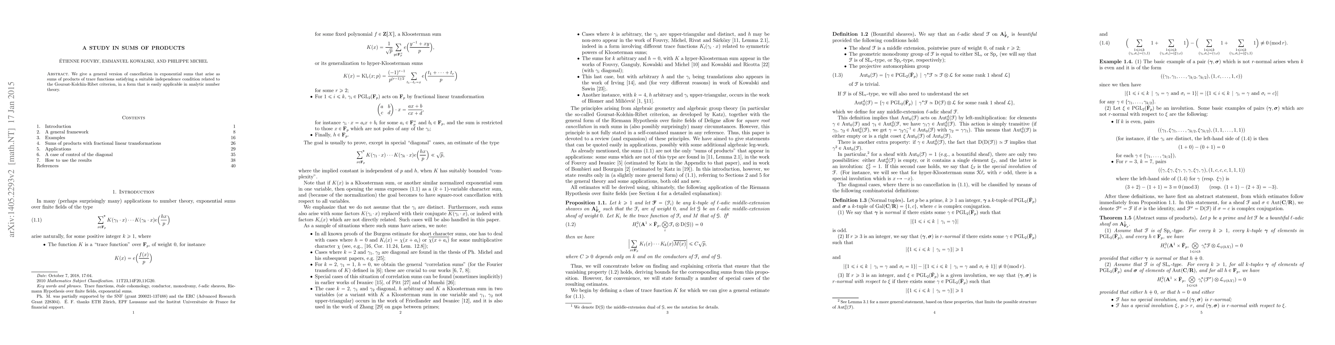 We give a general version of cancellation in exponential sums that arise as sums of products of trace functions satisfying a suitable independence condition related to the Goursat-Kolchin-Ribet criterion, in a form that is easily applicable in analytic number theory.
