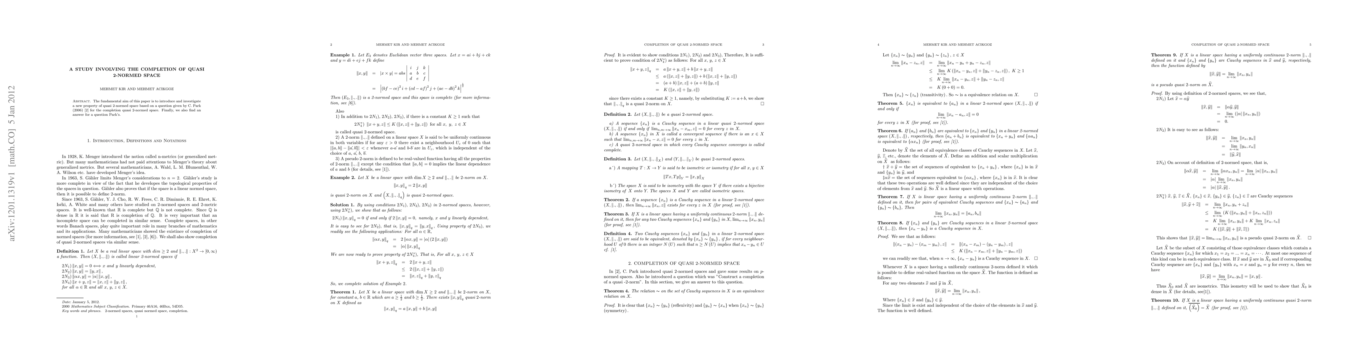 The fundamental aim of this paper is to introduce and investigate a new property of quasi 2-normed space based on a question given by C. Park (2006) [2] for the completion quasi 2-normed space. Finally, we also find an answer for a question Park's.
