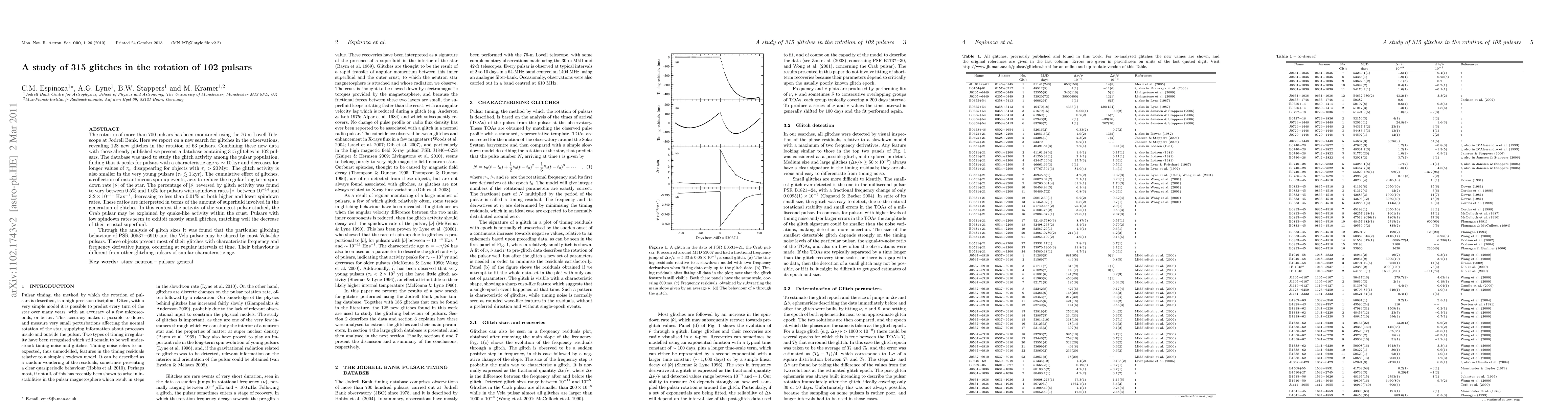 A study of 315 glitches in the rotation of 102 pulsars found that glitch activity peaks for older pulsars and decreases over time, with younger pulsars showing less activity. The findings suggest a correlation between glitch size and spindown rate, providing insight into the nature of glitches in these celestial objects.