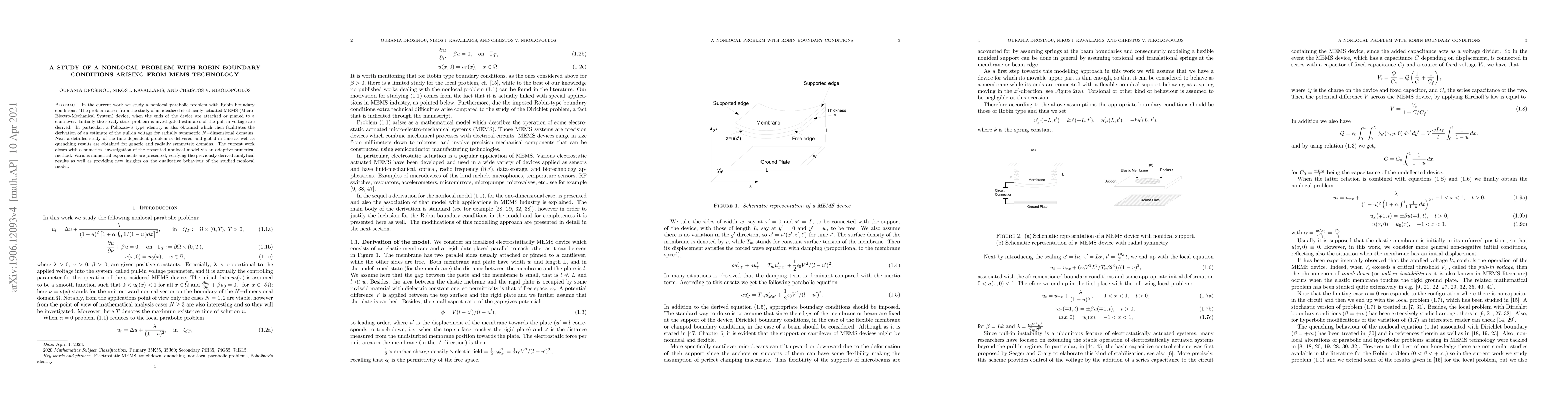 In the current work we study a nonlocal parabolic problem with Robin boundary conditions. The problem arises from the study of an idealized electrically actuated MEMS (Micro-Electro-Mechanical System) device. Initially we study the steady-state problem in one dimension and we present some numerical results regarding its bifurcation diagram. Next the $N-$dimensional nonlocal problem steady-state problem is investigated and a Pohozaev-type identity is first obtained which then facilitates derivation of an estimate of the pull-in voltage for radially symmetric domains. Later the time-dependent problem is investigated and global-in-time as well as quenching results are obtained again for general and radially symmetric domains. We close the current work with a numerical investigation of the presented nonlocal model via an adaptive numerical method. Various numerical experiments are presented verifying the obtained analytical results.