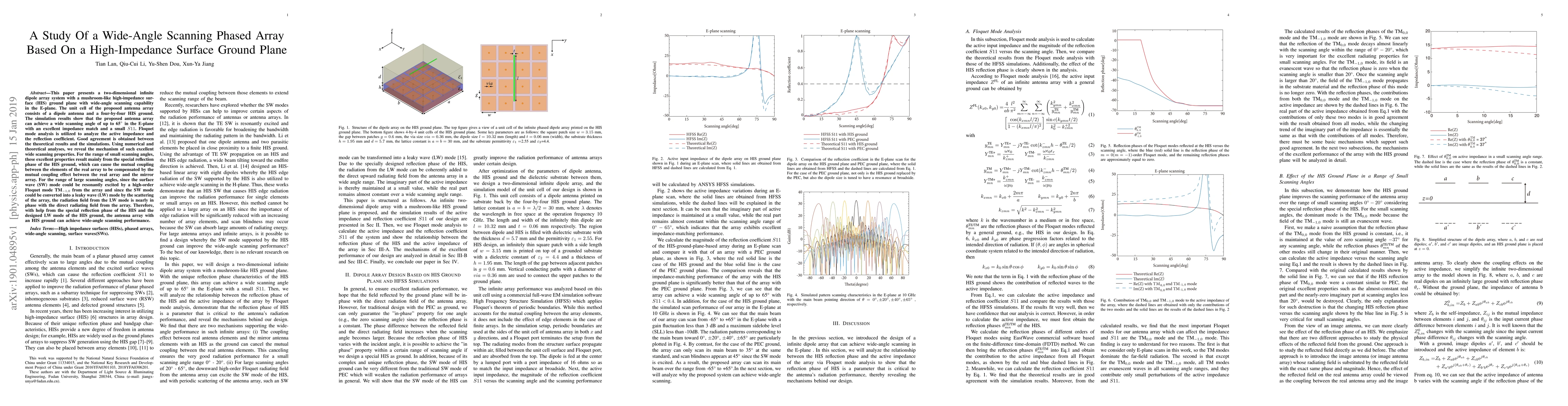 A theoretical analysis using Floquet method was employed to design a wide-angle scanning array with a mushroom-like HIS ground plane.