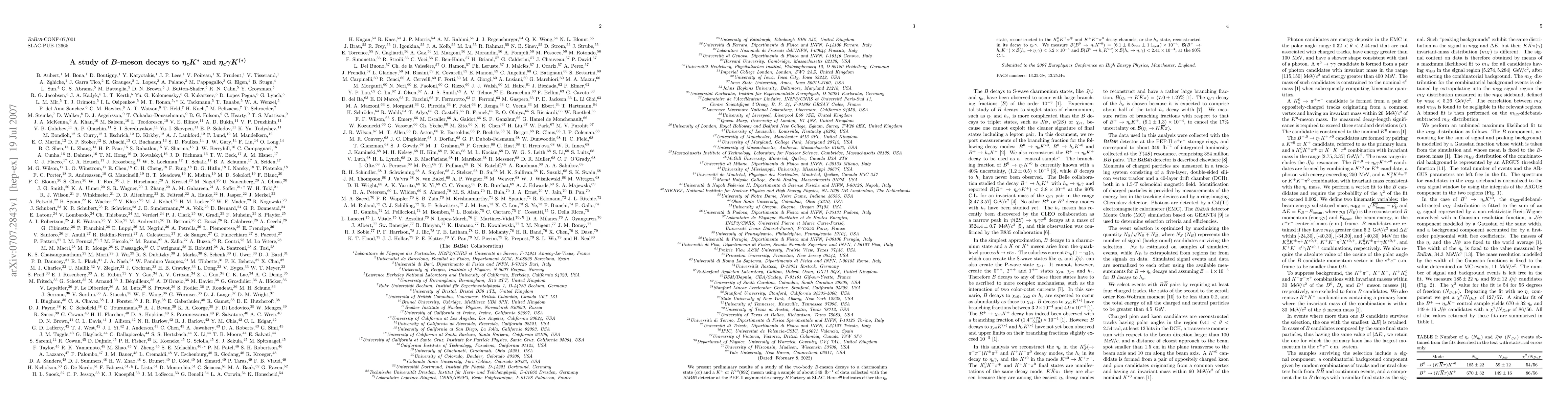 This study investigates B-meson decays to charmonium states and K+ or K*0 mesons using data from the BABAR detector. Preliminary results show branching fractions for specific decay channels, including B0 -> eta_c K*0 and limits on others, indicating a significant decay pathway.