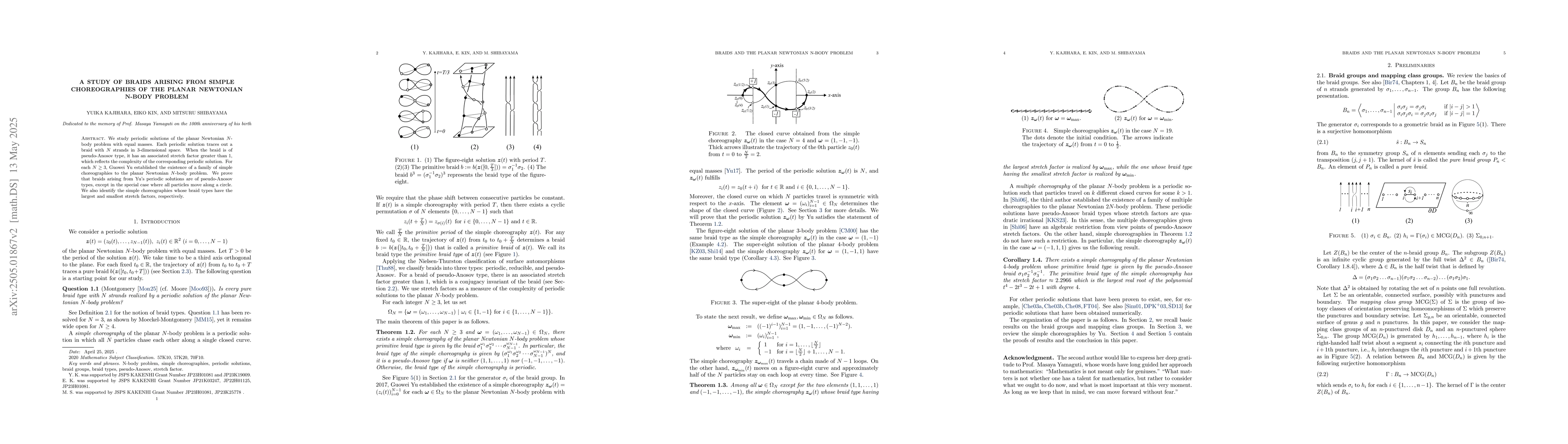 The study investigates periodic solutions of the planar Newtonian N-body problem with equal masses, tracing braids in 3D space. It proves that braids from Yu's periodic solutions are pseudo-Anosov, except when particles move in a circle.