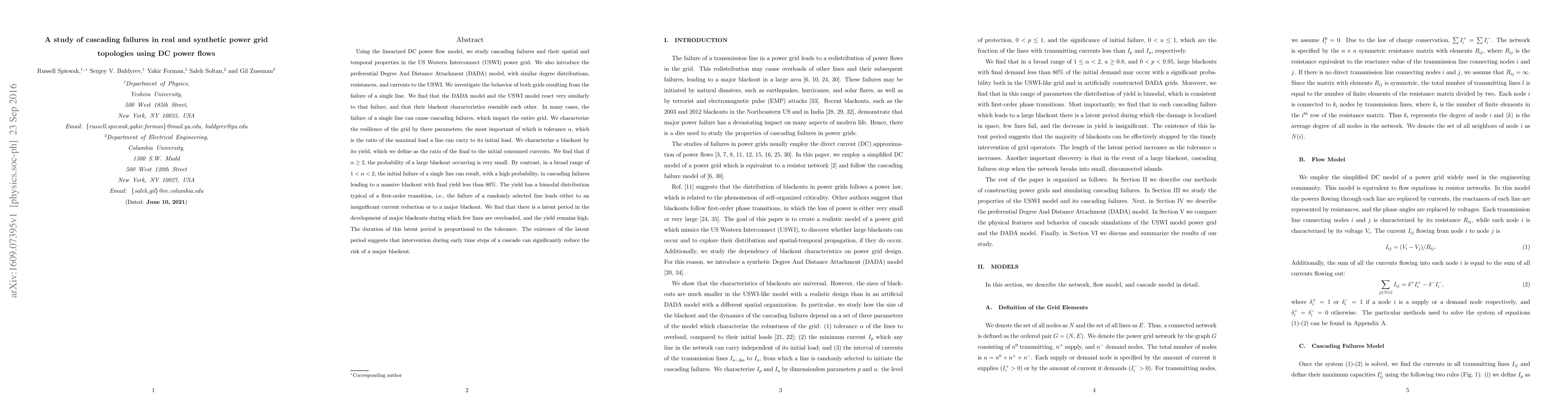 A study found that a single power grid failure can lead to massive blackouts in 40-60% of cases, with the likelihood increasing when the grid's tolerance is between 1 and 2. The researchers suggest early intervention during cascades could reduce the risk of major blackouts.