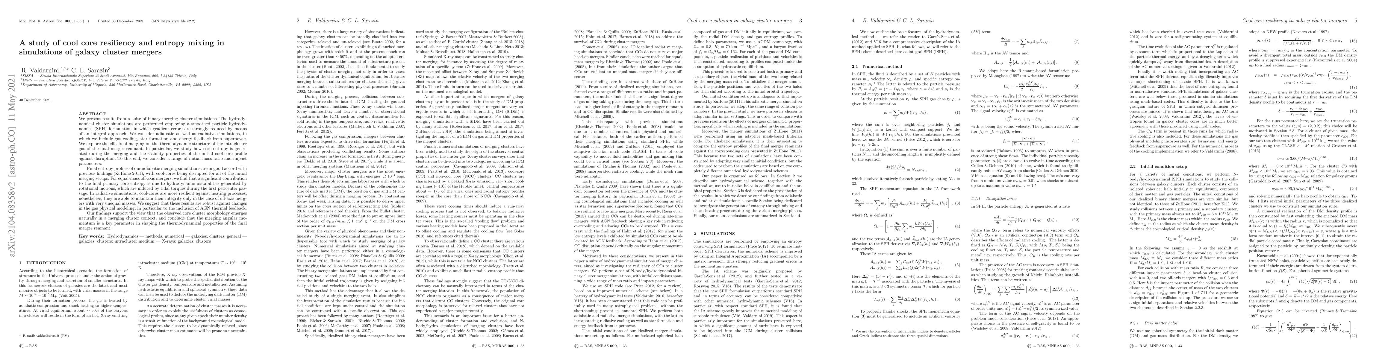 We present results from a suite of binary merging cluster simulations. The hydrodynamical cluster simulations are performed employing a smoothed particle hydrodynamics (SPH) formulation in which gradient errors are strongly reduced by means of an integral approach. We consider adiabatic as well as radiative simulations, in which we include gas cooling, star formation and energy feedback from supernovae. We explore the effects of merging on the thermodynamic structure of the intracluster gas of the final merger remnant. In particular, we study how core entropy is generated during the merging and the stability properties of the initial cool-core profile against disruption. To this end, we consider a range of initial mass ratio and impact parameters. Final entropy profiles of our adiabatic merging simulations are in good accord with previous findings (ZuHone 2011), with cool-cores being disrupted for all of the initial merging setups. For equal-mass off-axis mergers, we find that a significant contribution to the final primary core entropy is due to hydrodynamic instabilities generated by rotational motions, which are induced by tidal torques during the first pericenter passage. In radiative simulations, cool-cores are more resilient against heating processes; nonetheless, they are able to maintain their integrity only in the case of off-axis mergers with very unequal masses. We suggest that these results are robust against changes in the gas physical modeling, in particular to the inclusion of AGN thermal feedback. Our findings support the view that the observed core cluster morphology emerges naturally in a merging cluster context, and conclude that the merging angular momentum is a key parameter in shaping the thermodynamical properties of the final merger remnant.