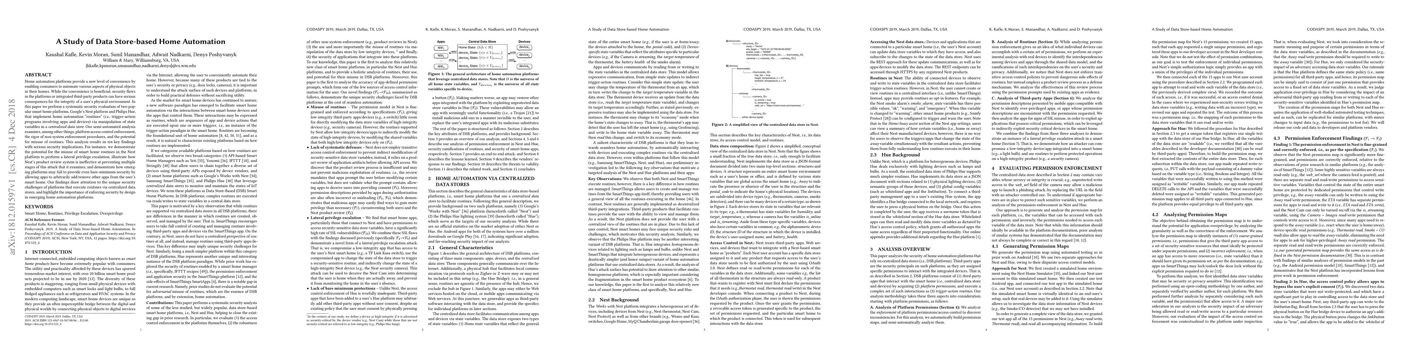 This study systematically evaluates the security of Google's Nest and Philips Hue smart home platforms, revealing significant vulnerabilities in their centralized data store-based routines. Key findings include potential privilege escalation and ineffective review systems, underscoring the need for robust security measures in home automation.