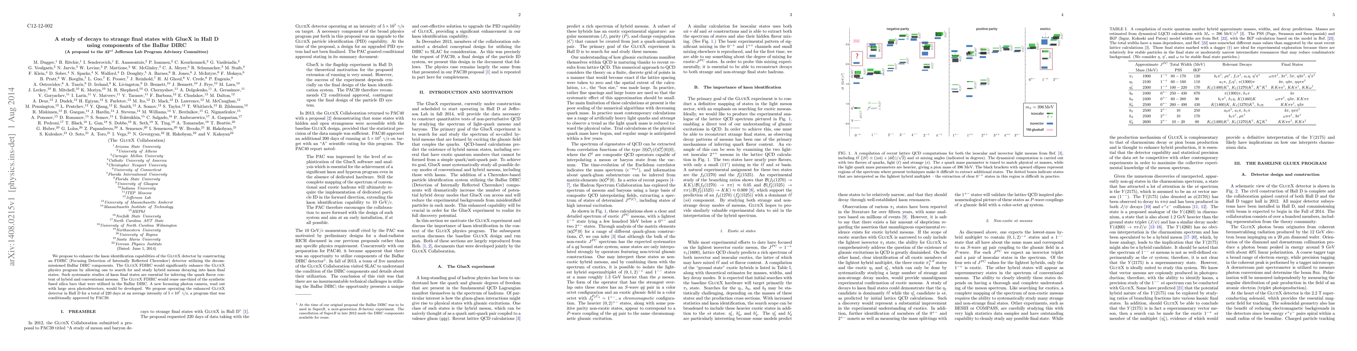 Researchers propose using decommissioned BaBar DIRC components to enhance GlueX detector capabilities for studying kaon final states in hybrid mesons, with a proposed 220-day operation at an average intensity of 5x10^7 photons per second.