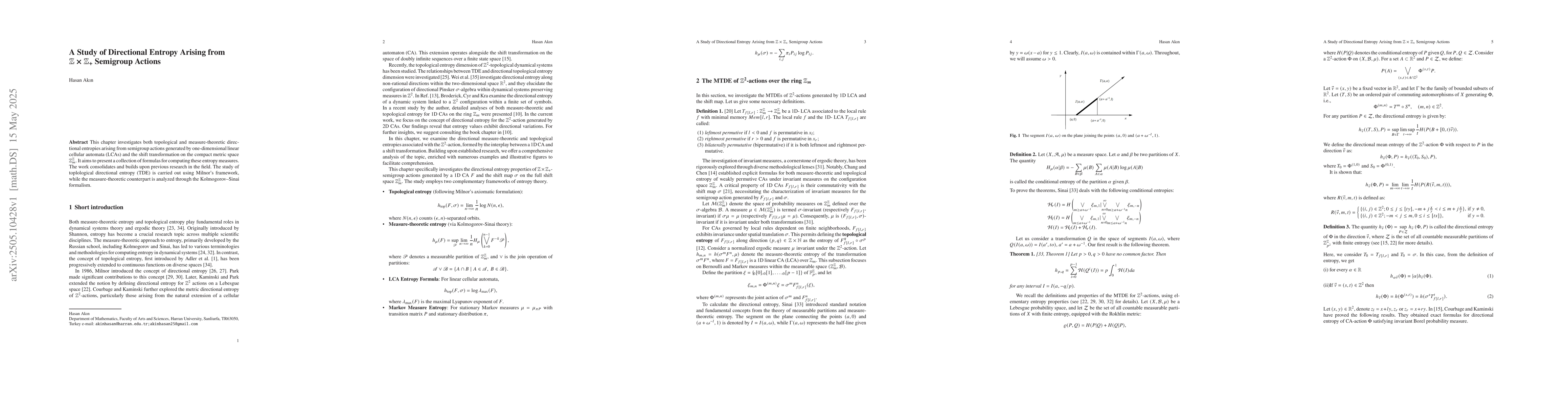 The paper presents a comprehensive analysis of directional entropy for semigroup actions generated by LCAs and shift transformations, bridging Milnor's geometric and Kolmogorov--Sinai approaches.