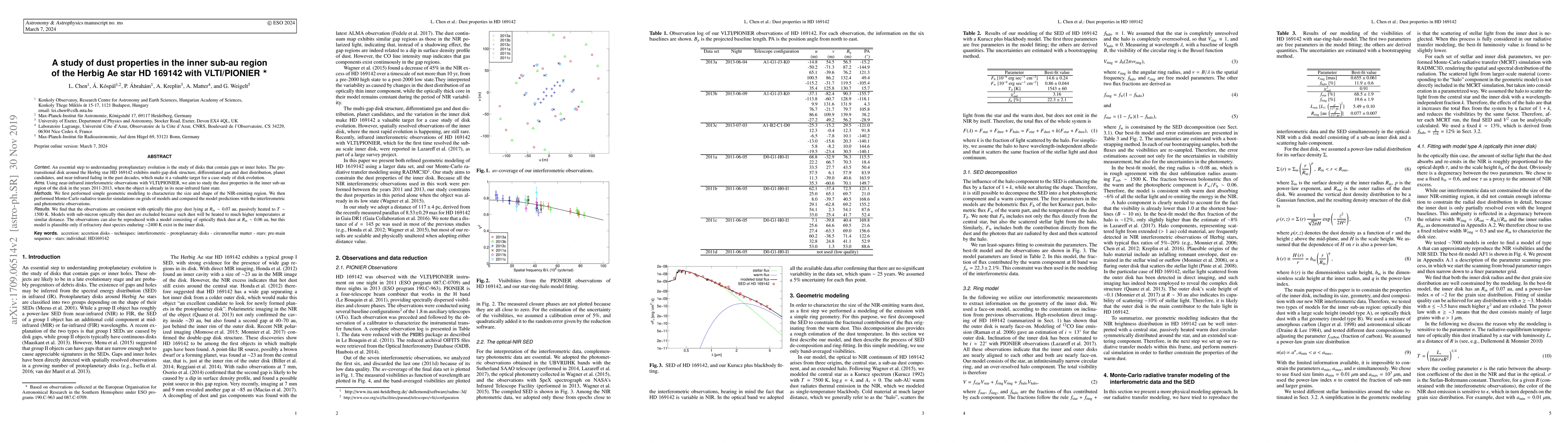 An essential step to understanding protoplanetary evolution is the study of disks that contain gaps or inner holes. The pretransitional disk around the Herbig star HD 169142 exhibits multi-gap disk structure, differentiated gas and dust distribution, planet candidates, and near-infrared fading in the past decades, which make it a valuable target for a case study of disk evolution. Using near-infrared interferometric observations with VLTI/PIONIER, we aim to study the dust properties in the inner sub-au region of the disk in the years 2011-2013, when the object is already in its near-infrared faint state. We first performed simple geometric modeling to characterize the size and shape of the NIR-emitting region. We then performed Monte-Carlo radiative transfer simulations on grids of models and compared the model predictions with the interferometric and photometric observations. We find that the observations are consistent with optically thin gray dust lying at Rin ~ 0.07 au, passively heated to T ~ 1500 K. Models with sub-micron optically thin dust are excluded because such dust will be heated to much higher temperatures at similar distance. The observations can also be reproduced with a model consisting of optically thick dust at Rin ~ 0.06 au, but this model is plausible only if refractory dust species enduring ~2400 K exist in the inner disk.