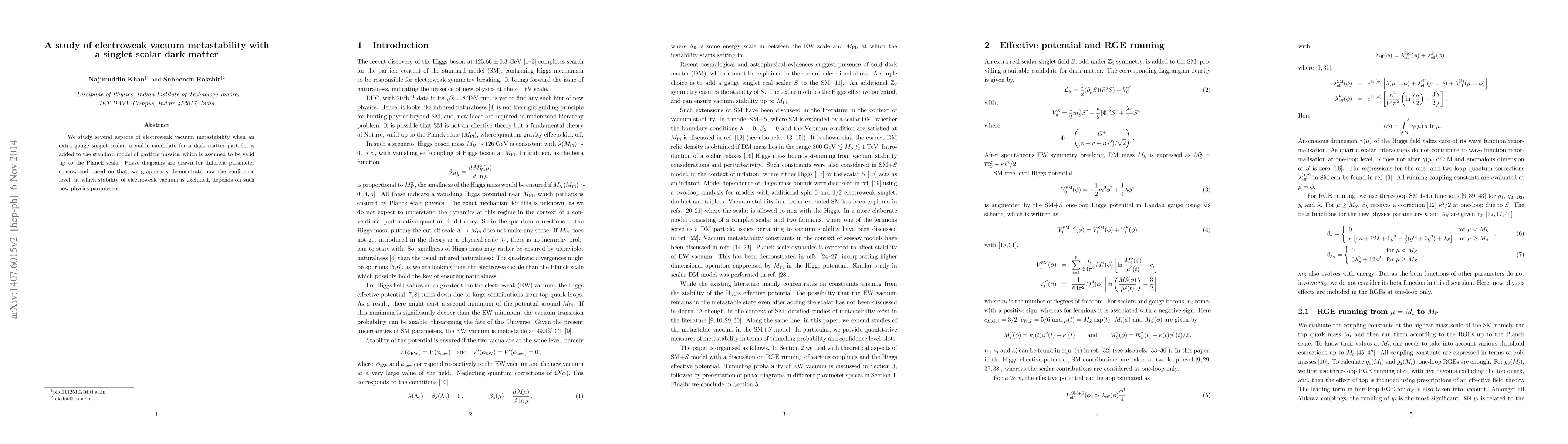 We study several aspects of electroweak vacuum metastability when an extra gauge singlet scalar, a viable candidate for a dark matter particle, is added to the standard model of particle physics, which is assumed to be valid up to the Planck scale. Phase diagrams are drawn for different parameter spaces, and based on that, we graphically demonstrate how the confidence level, at which stability of electroweak vacuum is excluded, depends on such new physics parameters.