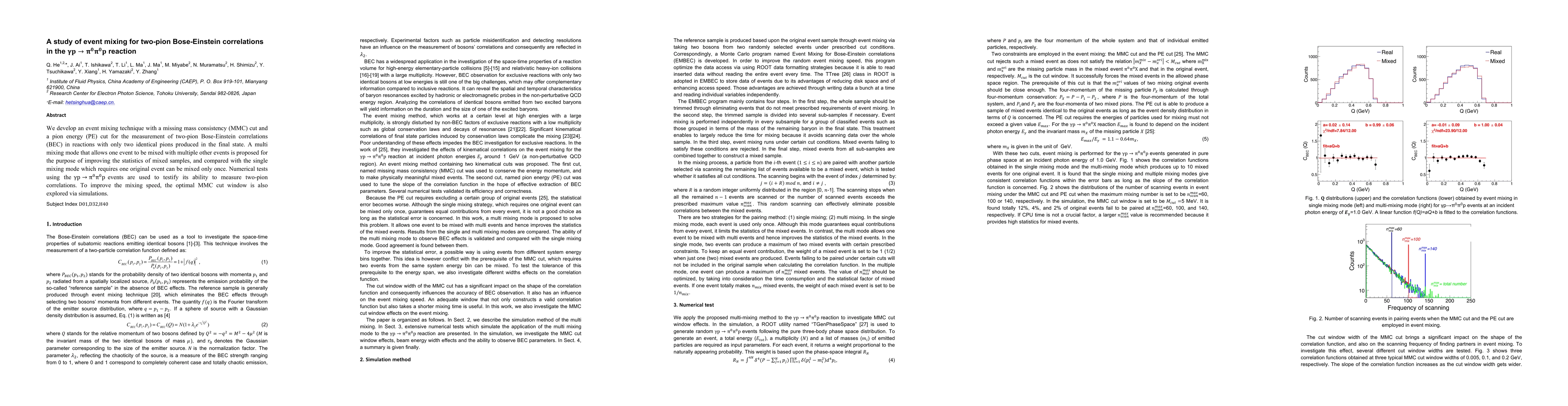 We develop an event mixing technique with a missing mass consistency (MMC) cut and a pion energy (PE) cut for the measurement of two-pion Bose-Einstein correlations (BEC) in reactions with only two identical pions produced in the final state. A multi mixing mode that allows one event to be mixed with multiple other events is proposed for the purpose of improving the statistics of mixed samples, and compared with the single mixing mode which requires one original event can be mixed only once. Numerical tests using the {\gamma}p -> {\pi}^0 {\pi}^0 p events are used to testify its ability to measure two-pion correlations. To improve the mixing speed, the optimal MMC cut window is also explored via simulations.