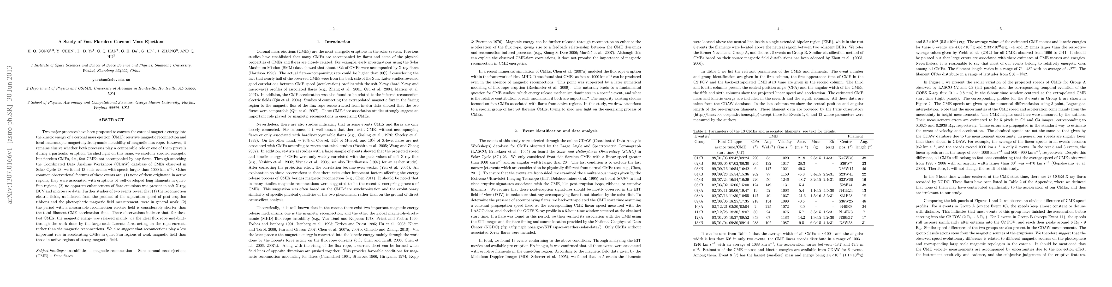 This study investigates the role of magnetic reconnection in fast flareless coronal mass ejections, finding that ideal flux rope instability is the primary mechanism for energy release.