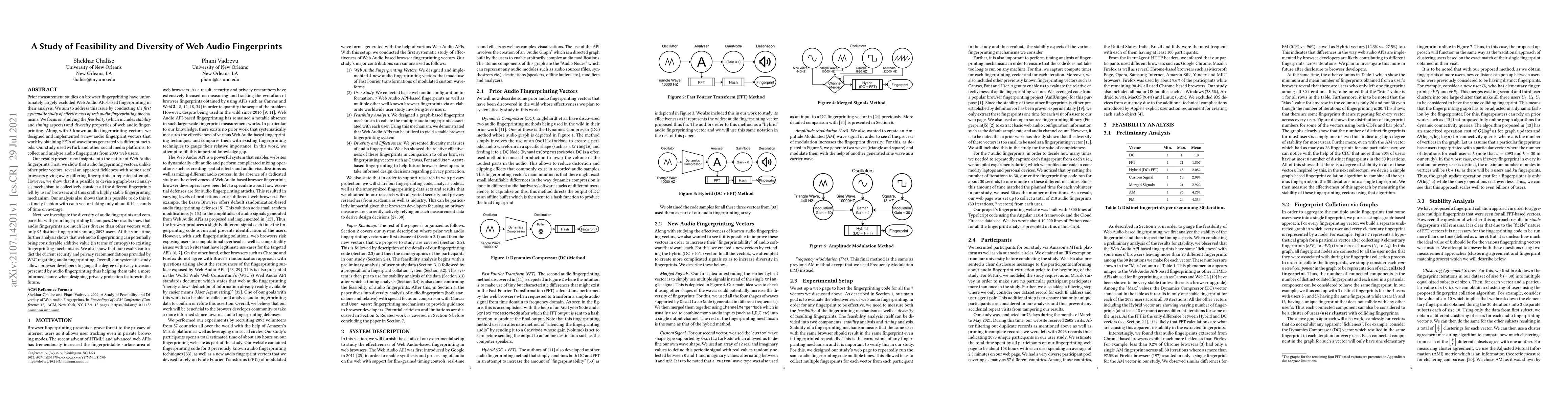 This study investigates the feasibility and diversity of web audio fingerprinting, revealing that while it produces fewer distinct fingerprints compared to other methods, it can still provide significant entropy when combined with existing techniques. The research introduces new audio fingerprint vectors and demonstrates a graph-based analysis to stabilize fingerprinting, challenging current W3C privacy recommendations.
