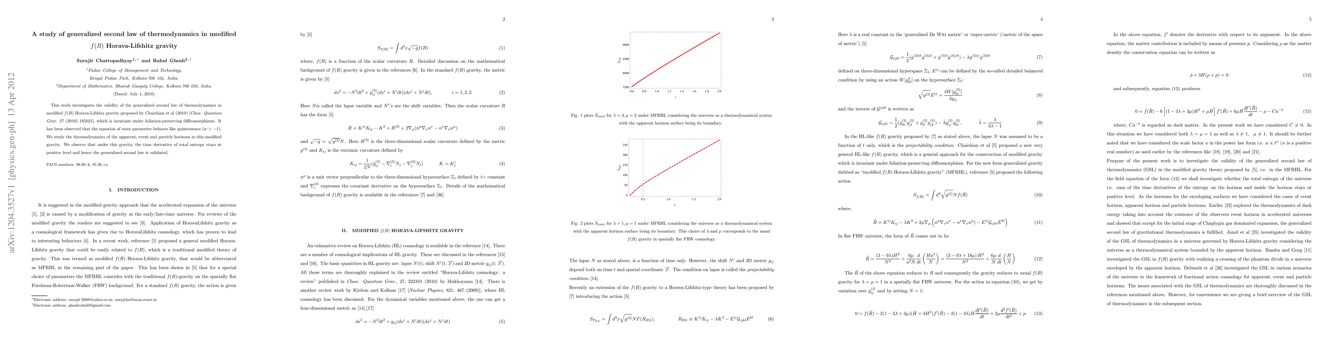 This study examines the generalized second law of thermodynamics in modified f(R) Horava-Lifshitz gravity, finding that the equation of state parameter behaves like quintessence. The research confirms the validity of the generalized second law by showing that the total entropy's time derivative remains positive under this modified gravity framework.