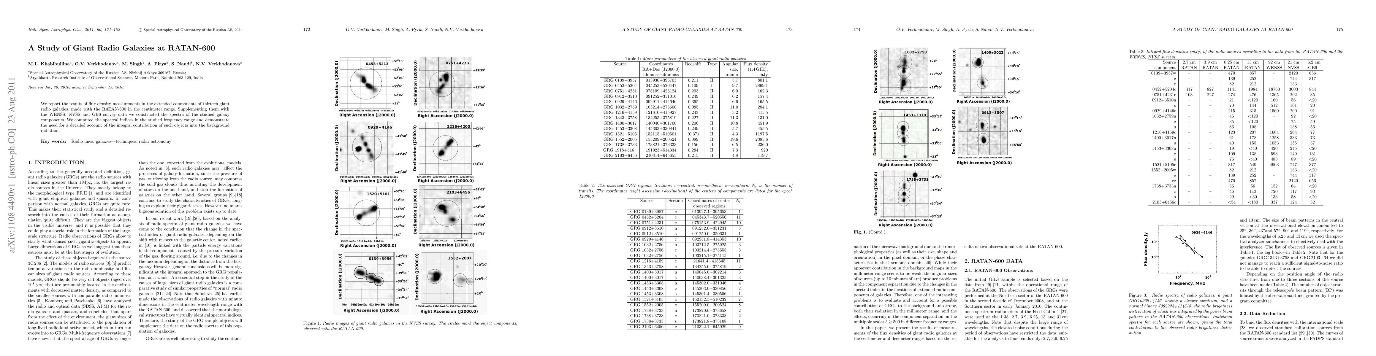 The paper presents a method for measuring flux densities and constructing spectra of giant radio galaxies using RATAN-600 and supplementary survey data, along with algorithms for handling multicomponent sources.