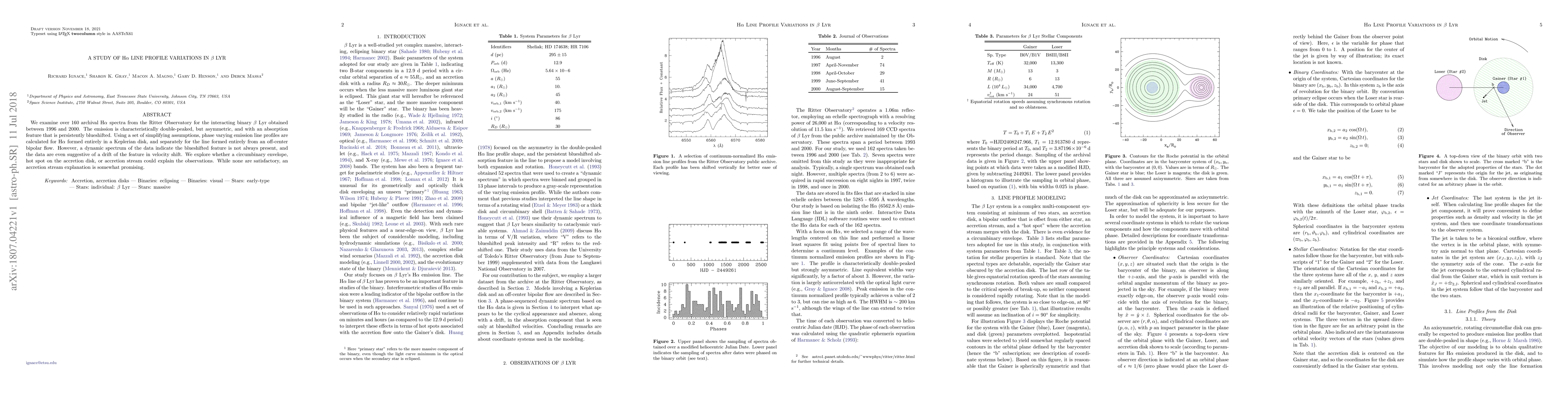 This study analyzes over 160 H$\alpha$ spectra of the binary star $\beta$~Lyr, revealing asymmetric, double-peaked emission with a persistently blueshifted absorption feature. The analysis suggests that an accretion stream may provide a plausible explanation for the observed variations, though other models like a circumbinary envelope or hot spot are less satisfactory.