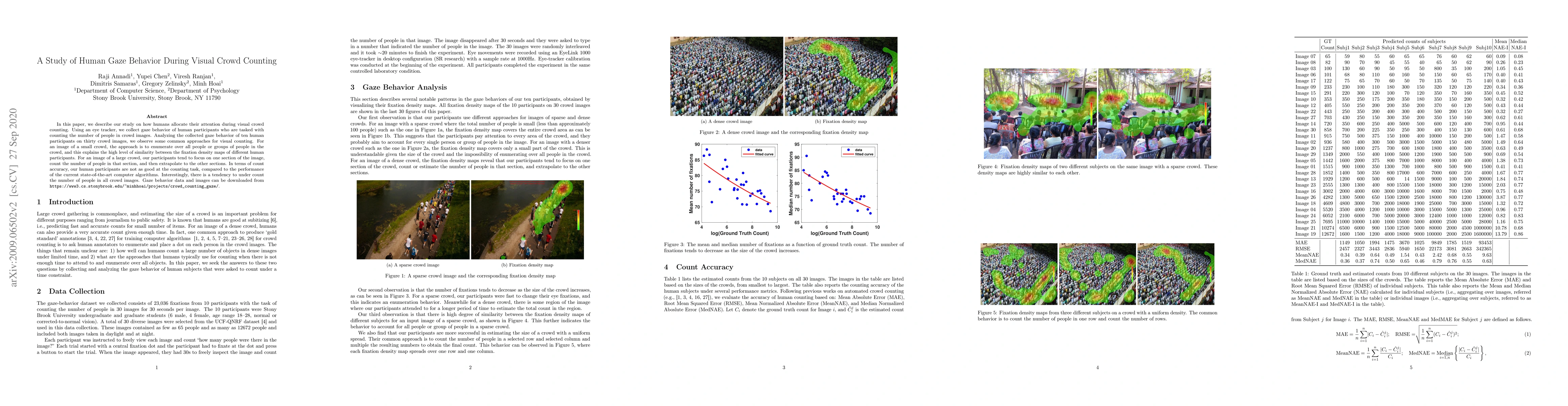 A study on human gaze behavior during visual crowd counting found that people tend to either count every person in a small crowd or focus on one section of a large crowd before extrapolating. Overall, human participants were less accurate at the counting task than computer algorithms.