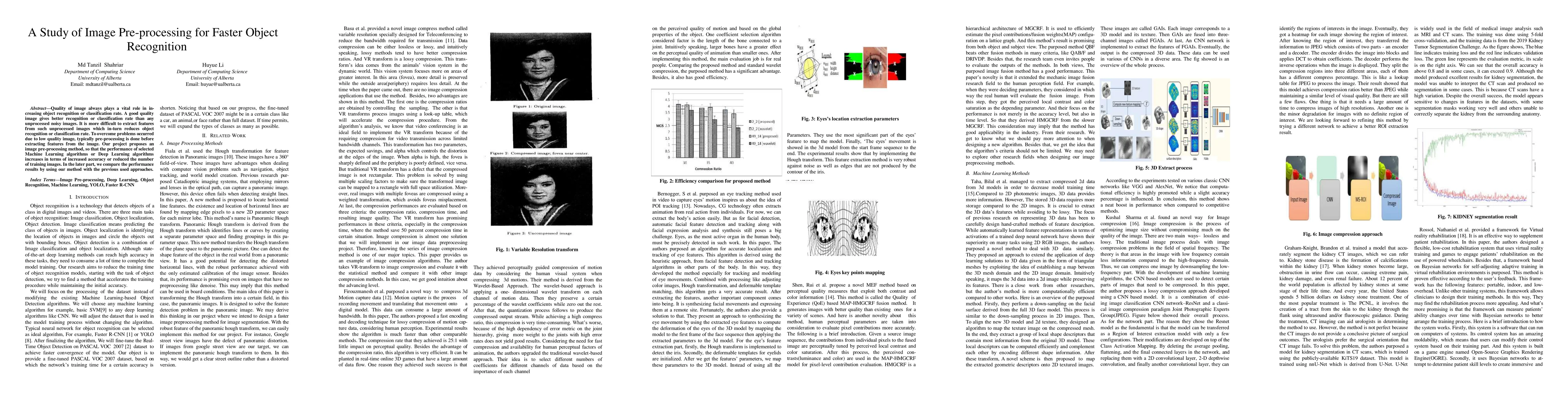 Quality of image always plays a vital role in in-creasing object recognition or classification rate. A good quality image gives better recognition or classification rate than any unprocessed noisy images. It is more difficult to extract features from such unprocessed images which in-turn reduces object recognition or classification rate. To overcome problems occurred due to low quality image, typically pre-processing is done before extracting features from the image. Our project proposes an image pre-processing method, so that the performance of selected Machine Learning algorithms or Deep Learning algorithms increases in terms of increased accuracy or reduced the number of training images. In the later part, we compare the performance results by using our method with the previous used approaches.