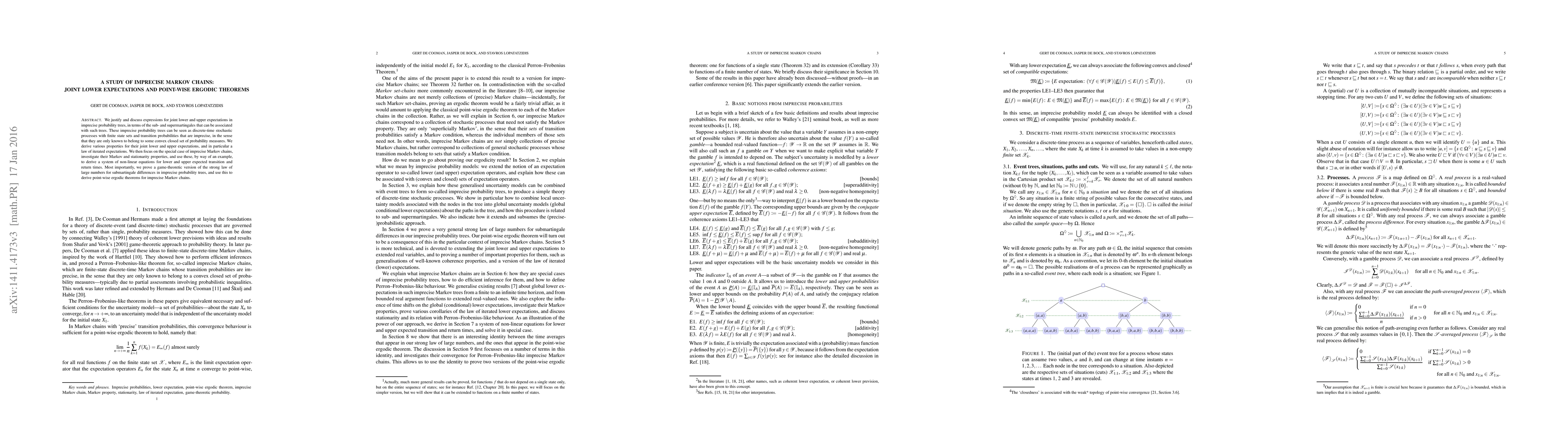 This paper explores imprecise Markov chains through imprecise probability trees, deriving properties for joint lower and upper expectations and establishing a game-theoretic version of the strong law of large numbers. It concludes with point-wise ergodic theorems for these chains.