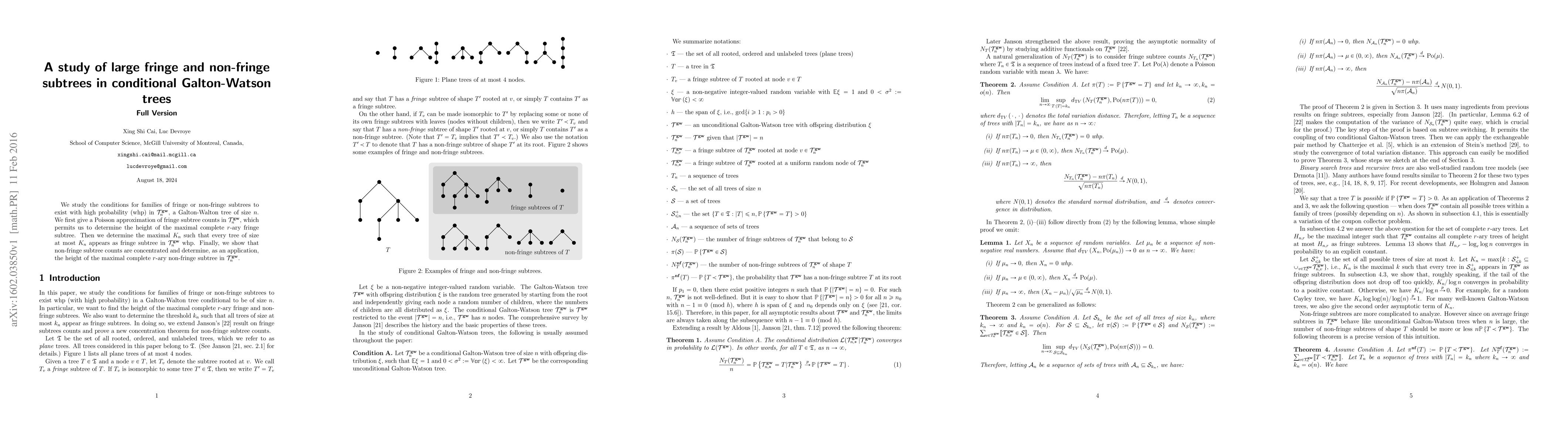 A study on Galton-Watson trees finds conditions for high-probability subtree appearances and determines the maximum tree size before fringe subtrees disappear.