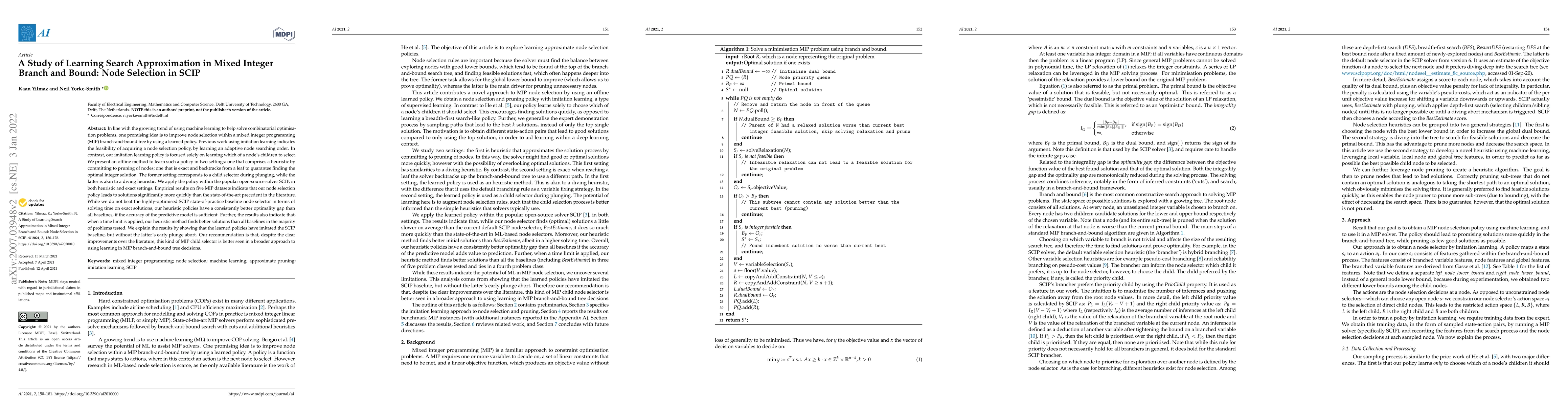 This research improves MIP (Mixed Integer Programming) solver performance by using machine learning to select which child node to explore next in a branch-and-bound tree. The study presents an imitation learning policy focusing on child node selection, applied within the SCIP solver. Results show quicker solutions and better optimality gaps compared to previous methods, especially under time limits, though not outperforming SCIP's built-in selector on exact solutions. The authors suggest integrating such learning methods into broader MIP branch-and-bound strategies for enhanced performance.