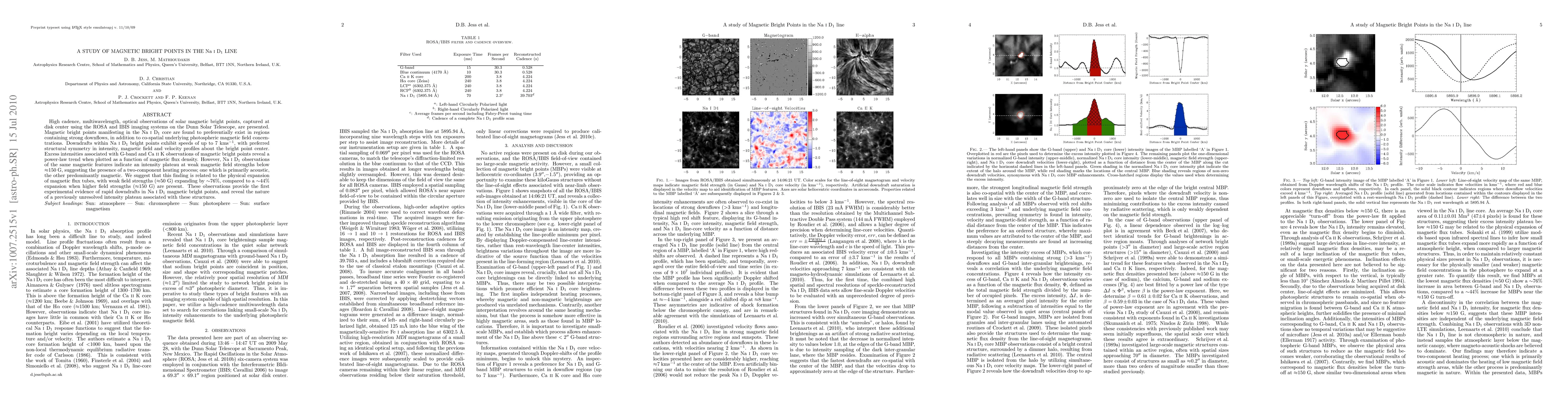 High cadence, multiwavelength, optical observations of solar magnetic bright points, captured at disk center using the ROSA and IBIS imaging systems on the Dunn Solar Telescope, are presented. Magnetic bright points manifesting in the Na I D1 core are found to preferentially exist in regions containing strong downflows, in addition to co-spatial underlying photospheric magnetic field concentrations. Downdrafts within Na I D1 bright points exhibit speeds of up to 7km/s, with preferred structural symmetry in intensity, magnetic field and velocity profiles about the bright point center. Excess intensities associated with G-band and Ca II K observations of magnetic bright points reveal a power-law trend when plotted as a function of magnetic flux density. However, Na I D1 observations of the same magnetic features indicate an intensity plateau at weak magnetic field strengths below ~150G, suggesting the presence of a two-component heating process; one which is primarily acoustic, the other predominantly magnetic. We suggest that this finding is related to the physical expansion of magnetic flux tubes, with weak field strengths (~50G) expanding by ~76%, compared to a ~44% expansion when higher field strengths (~150G) are present. These observations provide the first experimental evidence of rapid downdrafts in Na I D1 magnetic bright points, and reveal the nature of a previously unresolved intensity plateau associated with these structures.