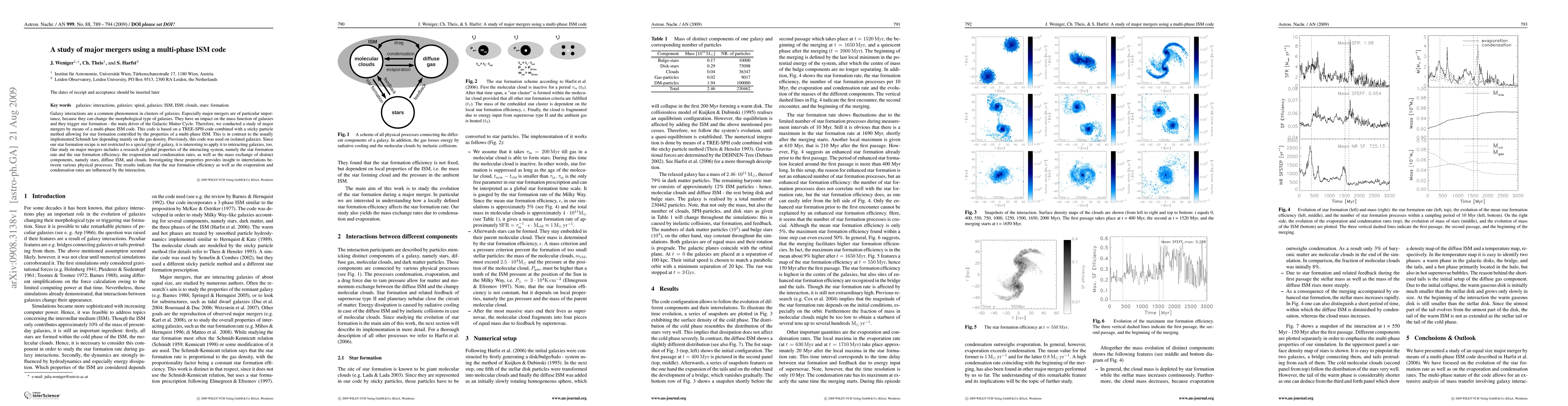 This study uses a multi-phase ISM code to analyze major galaxy mergers, focusing on the star formation rate, efficiency, and mass exchange between stars and ISM components. The results show that galaxy interactions significantly affect star formation efficiency and gas dynamics.