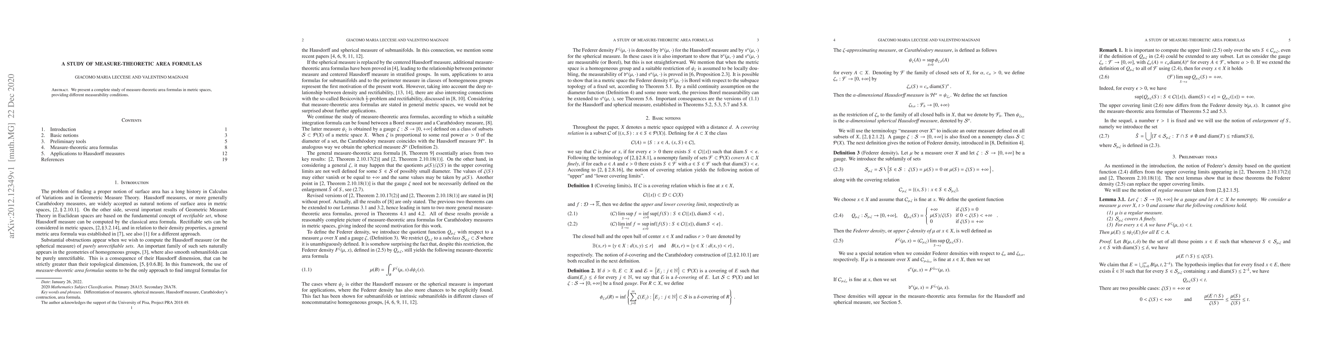 Summary: This paper thoroughly examines measure-theoretic area formulas in metric spaces, exploring various measurability conditions that underpin these formulas. The study aims to provide a comprehensive understanding of the underlying mathematical structures.