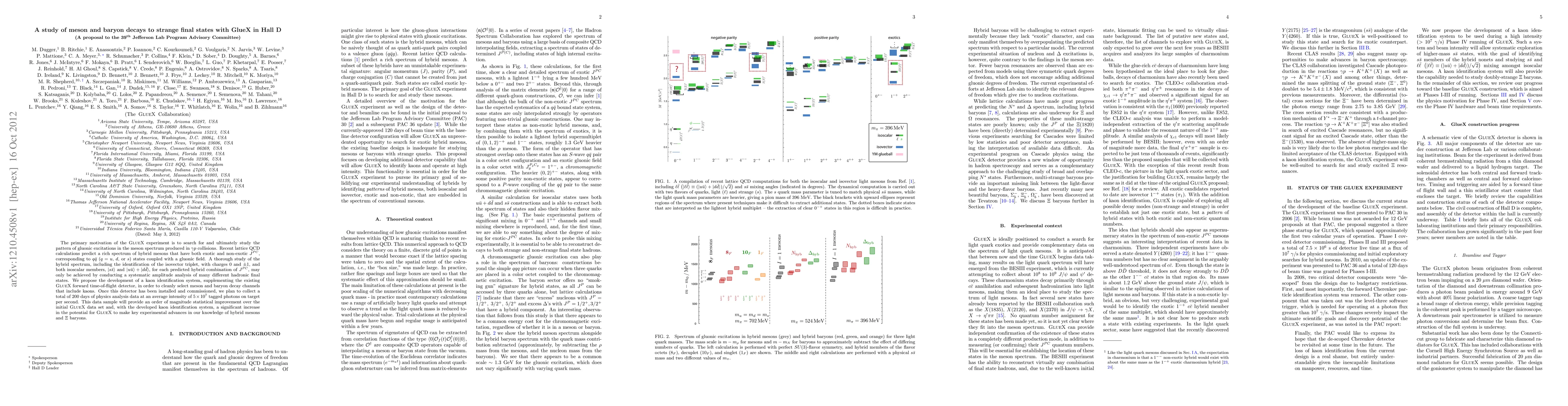 The primary motivation of the GlueX experiment is to search for and ultimately study the pattern of gluonic excitations in the meson spectrum produced in gamma p collisions. Recent lattice QCD calculations predict a rich spectrum of hybrid mesons that have both exotic and non-exotic JPC, corresponding to q q-bar (q=u, d, or s) states coupled with a gluonic field. A thorough study of the hybrid spectrum, including the identification of the isovector triplet, with charges 0 and +-1, and both isoscalar members, |s s-bar> and |u u-bar> + |d d-bar>, for each predicted hybrid combination of JPC, may only be achieved by conducting a systematic amplitude analysis of many different hadronic final states. We propose the development of a kaon identification system, supplementing the existing GlueX forward time-of-flight detector, in order to cleanly select meson and baryon decay channels that include kaons. Once this detector has been installed and commissioned, we plan to collect a total of 200 days of physics analysis data at an average intensity of 5 x 10^7 tagged photons on target per second. This data sample will provide an order of magnitude statistical improvement over the initial GlueX data set and, with the developed kaon identification system, a significant increase in the potential for GlueX to make key experimental advances in our knowledge of hybrid mesons and Cascade baryons.