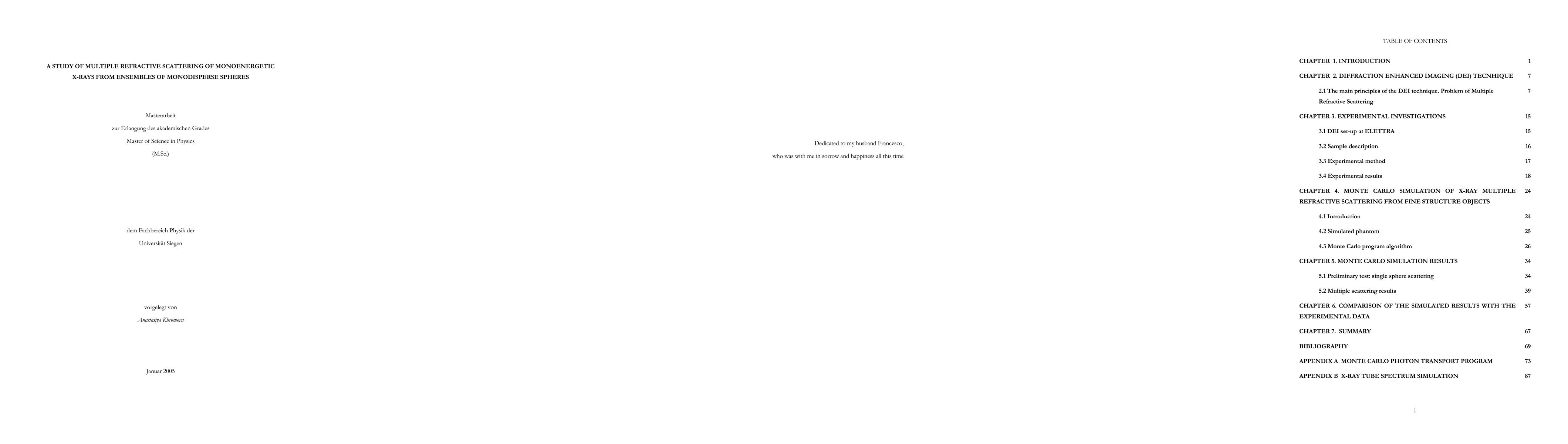 A Monte Carlo program based on a three dimensional vector approach was developed to model multiple refractive scattering of X-ray photons in objects with a fine structure. A particular interest was paid to the investigation of lung tissue. Alveoli are low contrast and low absorbing structures. Hence, they are not visible in the conventional radiography which is based on the changes in the absorption arising from density differences and from variation in the thickness and composition of the object. Another possibility to image fine structure objects is to use the phase imaging techniques. As known, the phase change constant delta at low energies (15-30 keV) is 1000 times larger than the absorption constant beta. The Diffraction Enhance Imaging (DEI) technique is one of the recent phase sensitive techniques based on the use of an analyzer crystal placed between the sample and the detector.
