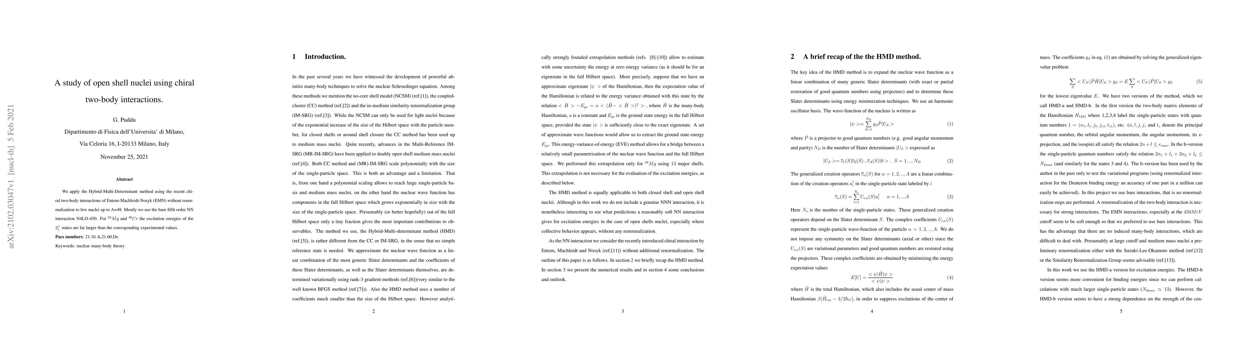We apply the Hybrid-Multi-Determinant method using the recent chiral two-body interactions of Entem-Machleidt-Nosyk (EMN) without renormalization to few nuclei up to A=48. Mostly we use the bare fifth order NN interaction N4LO-450. For ${}^{24}Mg$ and ${}^{48}Cr$ the excitation energies of the $2^+_1$ states are far larger than the corresponding experimental values.