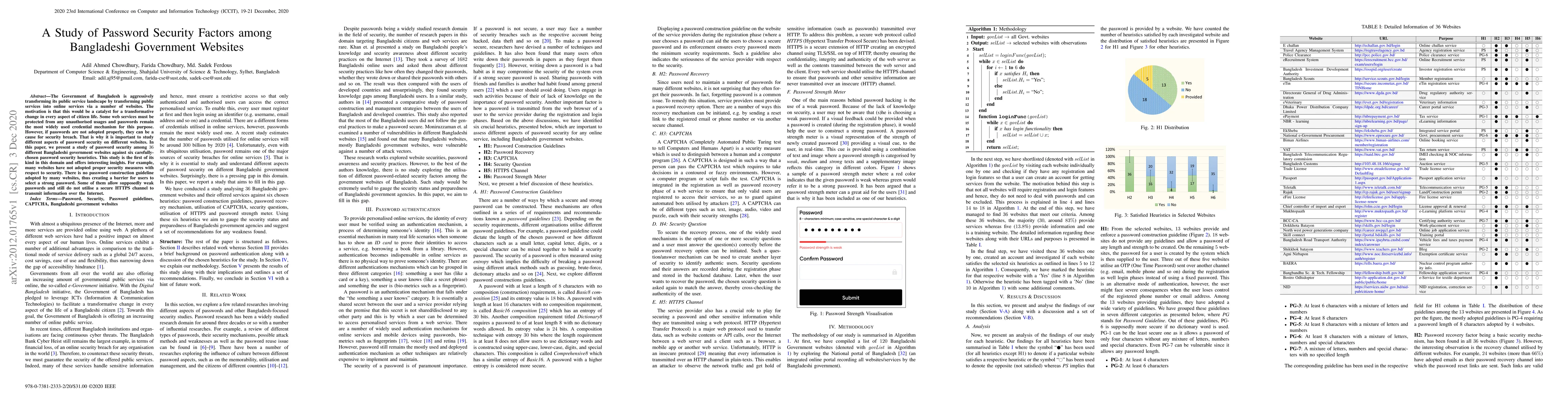 This study examines password security factors across 36 Bangladeshi government websites against six security heuristics, revealing widespread deficiencies such as lack of password guidelines and weak password policies, alongside inadequate use of HTTPS. This first-of-its-kind research highlights significant security vulnerabilities.